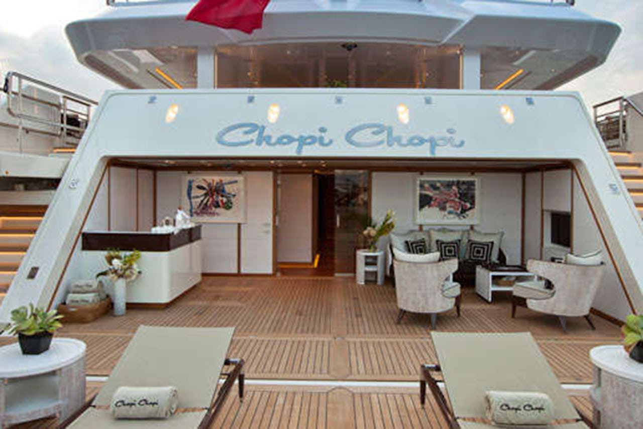 Aktern på en båt ska vara fri från all slags förvaring. Det är männen bakom Chopi Chopi överens om. Tendern får plats i ett garage i sidan på jakten litet längre fram.
