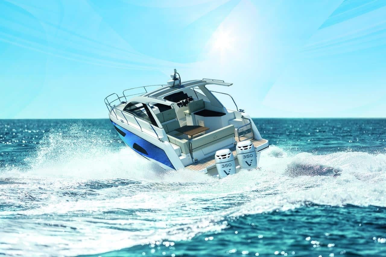 Trenden att allt större båtar begåvas med utombordare håller i sig och här är det engelska Sealine som tar klivet.
