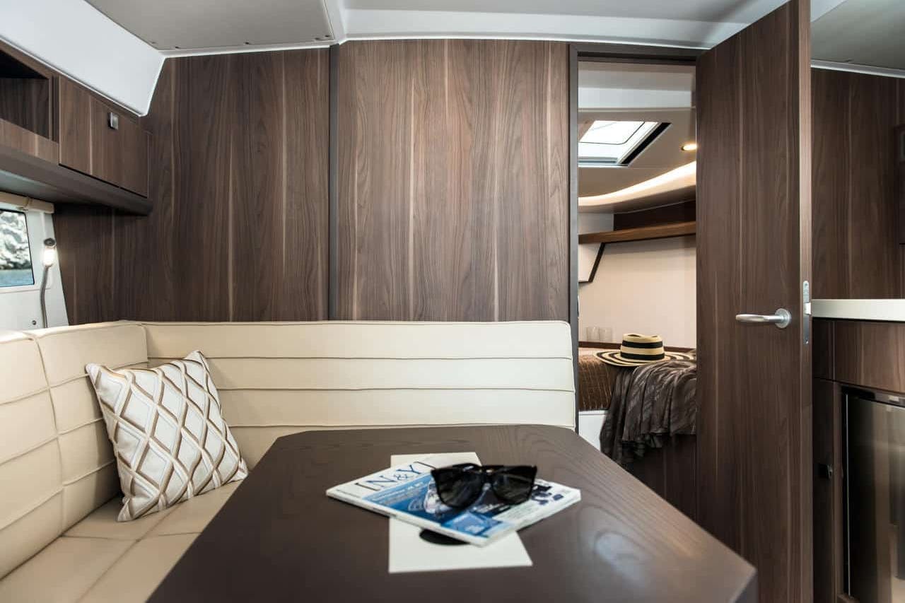 Av bilderna att döma så har man utnyttjat det, trots allt begränsade utrymmet väl och fått plats med såväl ett utvändigt som ett invändigt pentry, två sovkabiner toalettutrymme med mera.