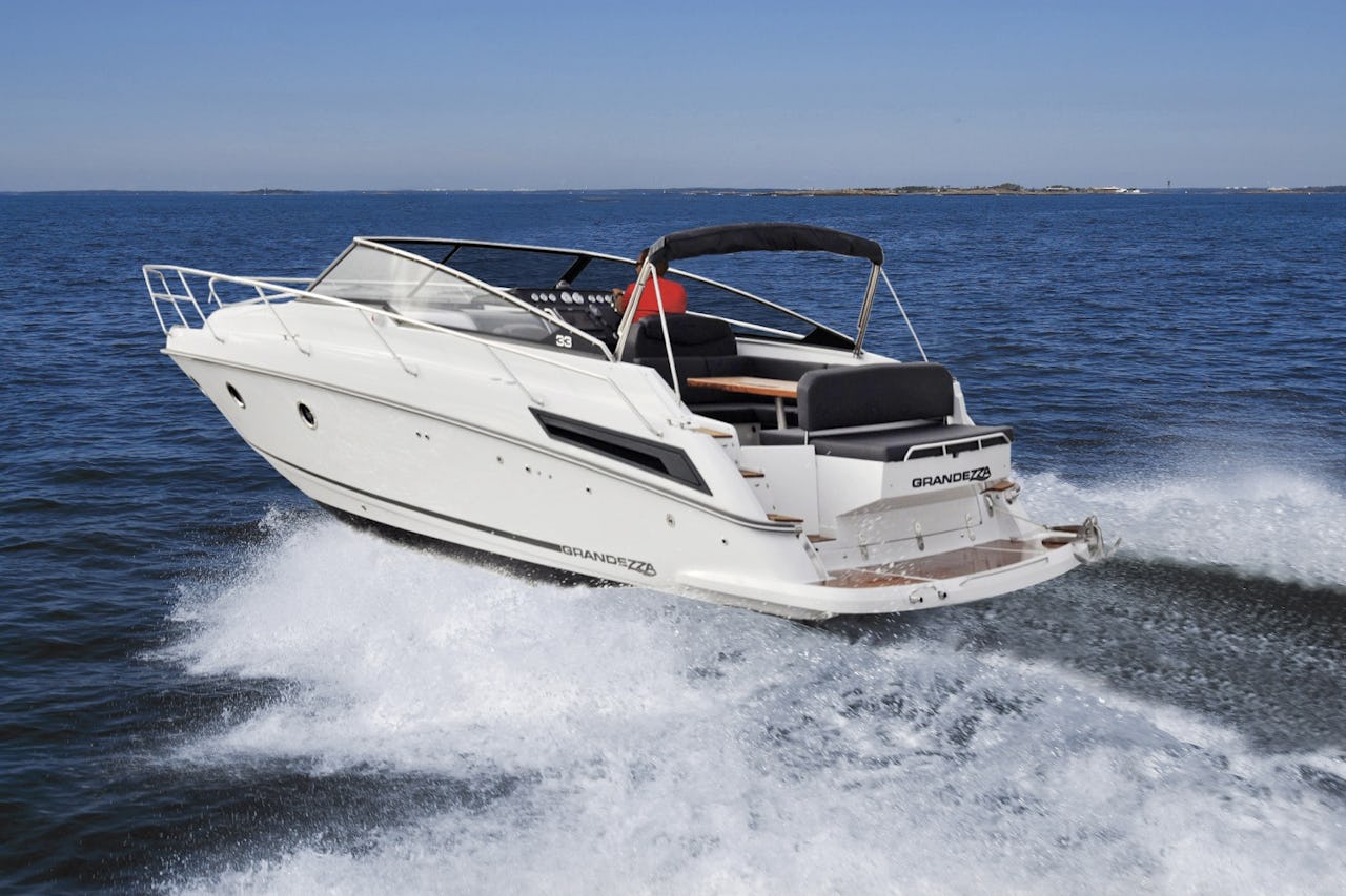 Till båtmässan Allt för sjön kommer också Grandezza 33 S (Sport) som är rymlig för sin storlek med en bra för- och mittkabin. Sittbrunnen har också gott om svängrum med sittplatser för upp till åtta personer. I motorrummet har man förslagsvis en Volvo D6 på 370 hk.