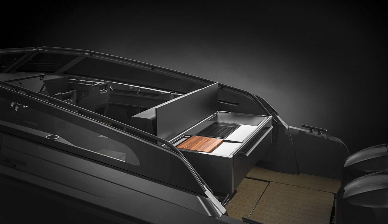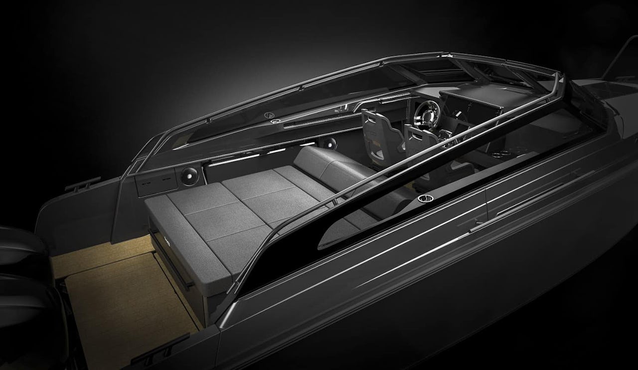 På bästa daycruisermanér har den ett boutrymme under fördäcket, en solbädd, en till synes ombonad sittbrunn och så utlovas också en så kallad wet-bar med grill.