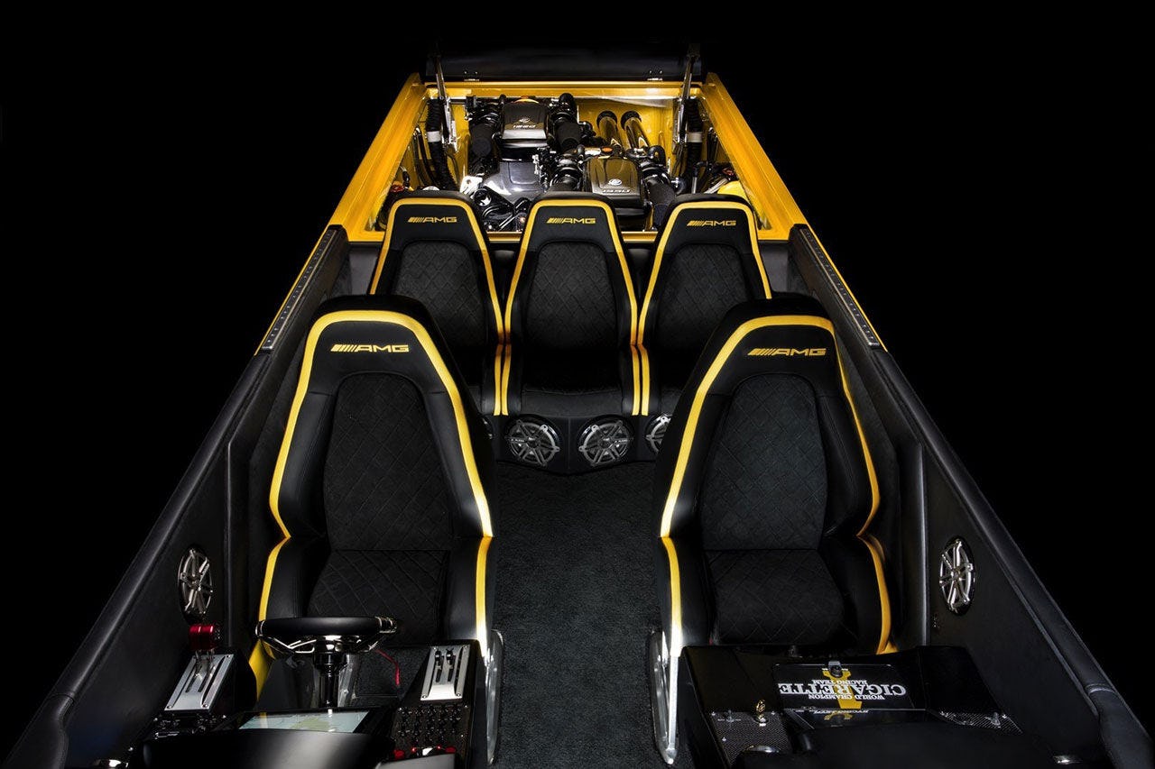 När Mercedes ska lansera nya värstingbilar verkar de tycka att det är en bra idé att spöka ut världens mest extrema enskrovsbåtar med sina AMG-loggor som vanligtivs sitter på deras sportigaste modeller.