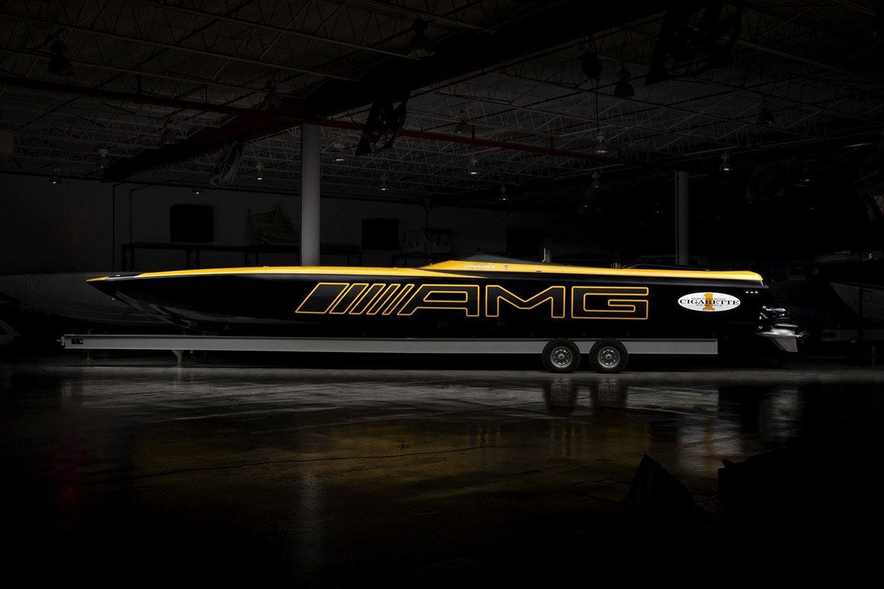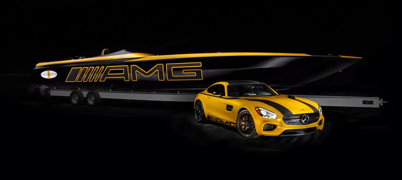 Nu är det Mercedes dubbelturbomatade AMG GT S med 510 hästar som presenteras och återigen är det legendariska Cigarette som står för fartvidundret till båt. Modellen heter, håll i er: Cigarette Racing 50 Marauder GT S Concept.
