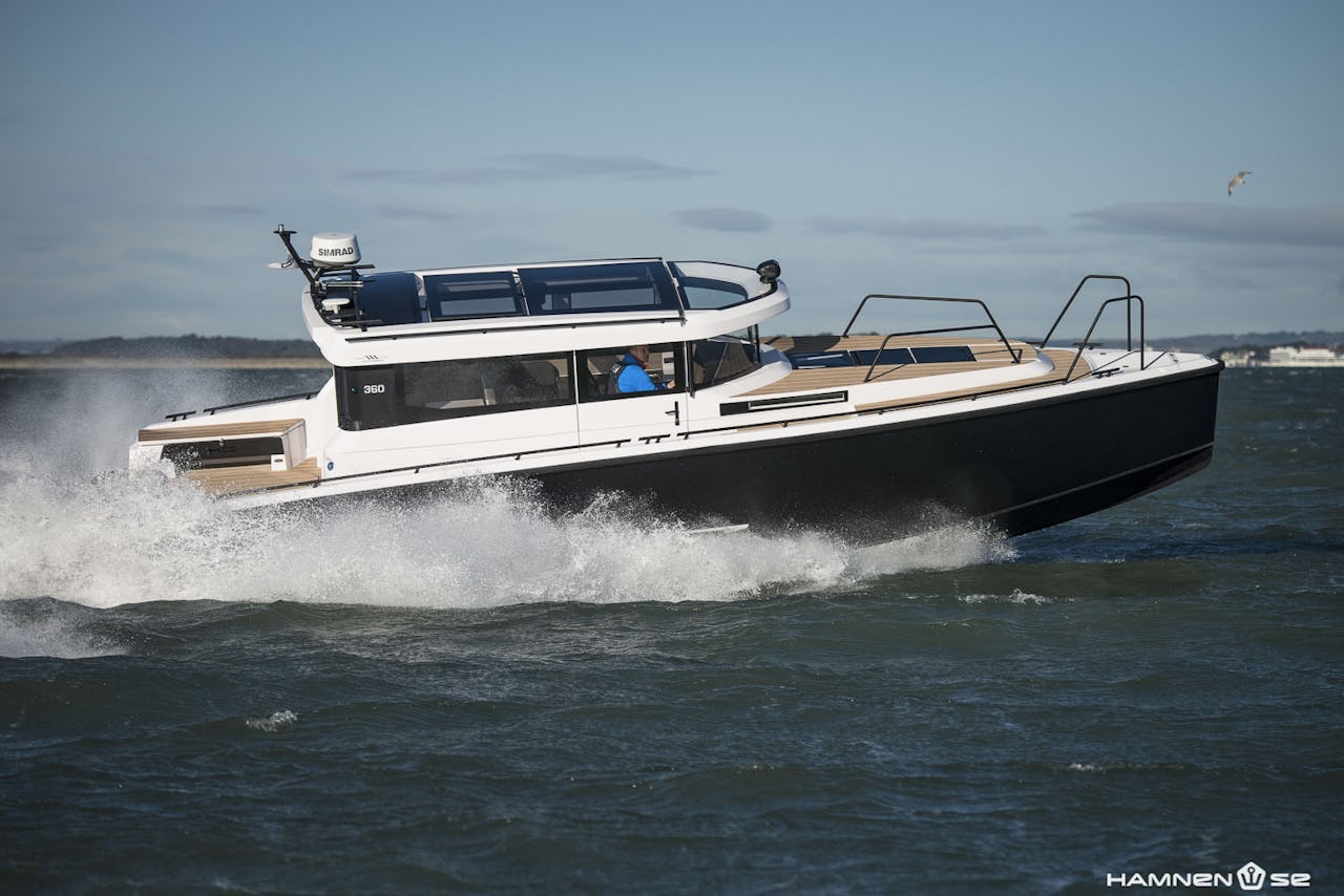Frågan är om den håller måttet. Klarar till exmpel det stora glastaket av krafterna från två meter motsjö i 35 knop och har superyacht-designern Jarrko Jämsen något nytt att tillföra fritidsbåtsvärlden? Det får ni snart se i vår filmade test där vi utlovar flygande bilder från havet i 40 knop… Tills dess; håll tillgodo med bildspelet nedan, signerat Gustav Morin.