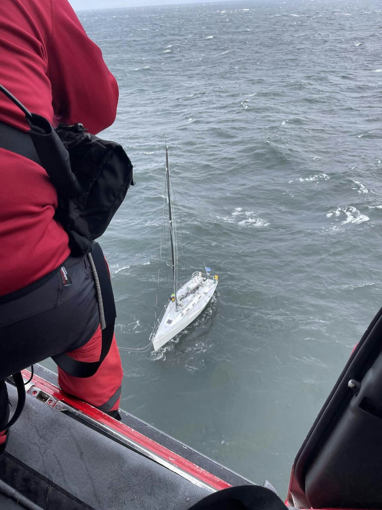 – Vi ville stanna ombord för bärgning men Sweden Rescue ville plocka oss. 45 minuter senare dök Sjöfartsverkets stora helikopter upp ovanför oss och efter en otroligt imponerande insats av ytbärgare och besättning lyftes vi säkert ombord och kunde flygas till Sandhamn.