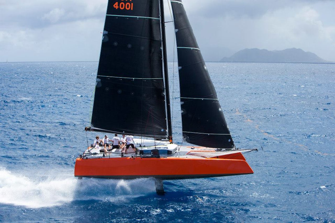 Så länge det inte dyker upp en MOD 70 eller kanske ORMA 60-trimaran på startlinjen så lär nya Gunboat G4 vara först över linjen i allt hon ställer upp i. Åtminstone om det blåser mer än sju m/s, för det är då man hittills tidigast lyckats få henne att flyga.