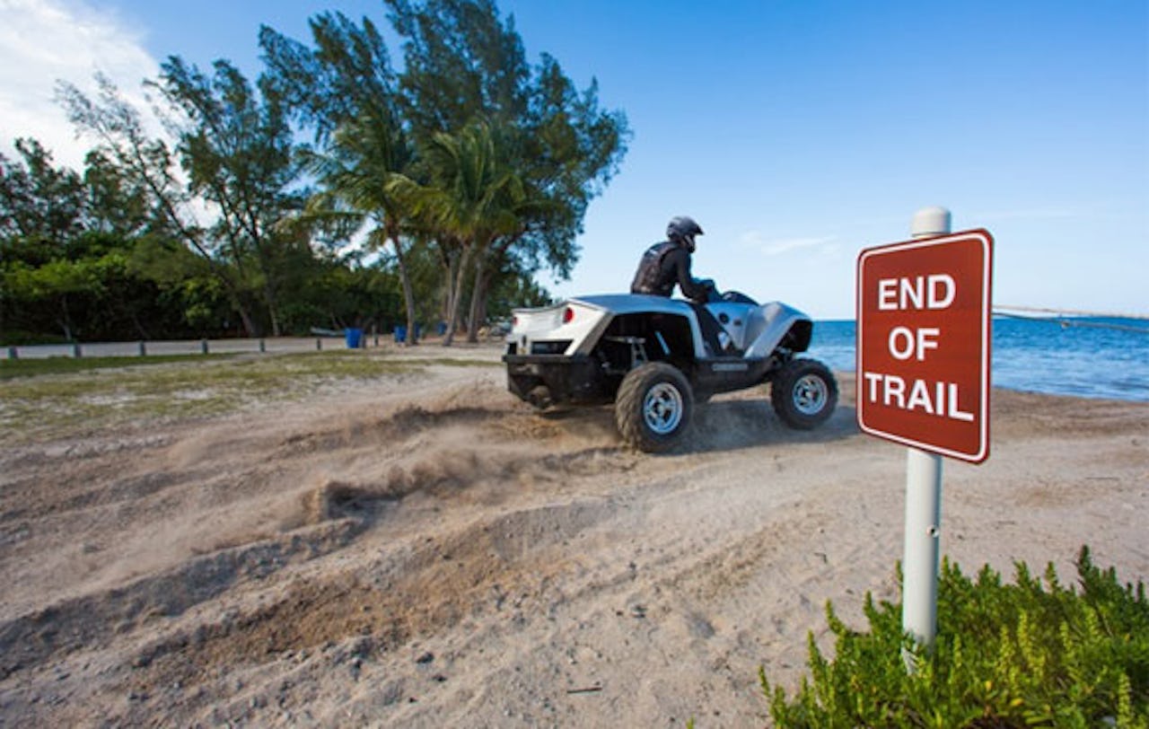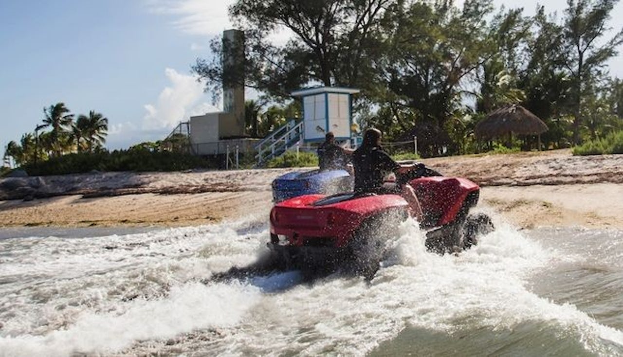Priset ligger på ca 40 000 dollar. För de pengarna får man både en vanlig fyrhjuling och en vattenskoter, men får man tro Gibbs så är allt-i-ett-värdet högt.