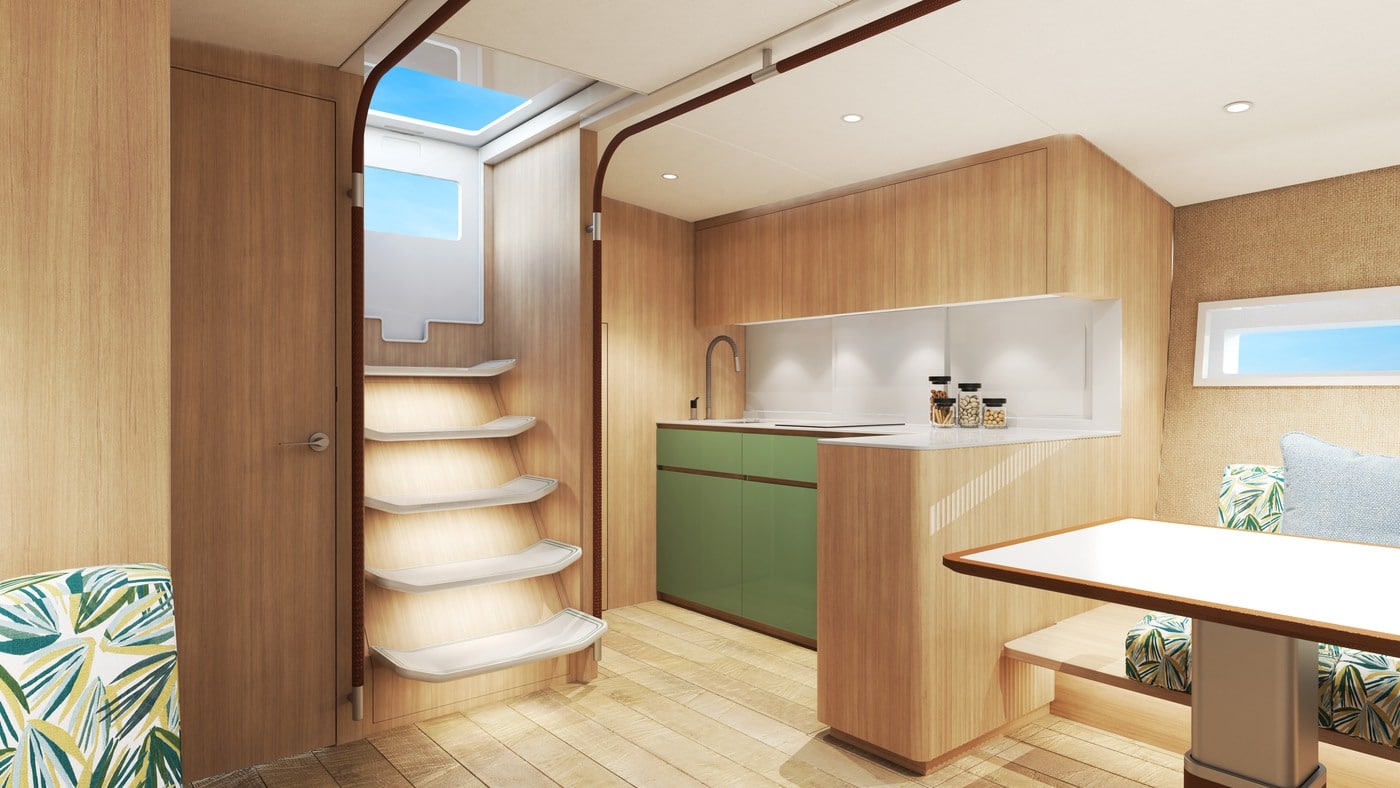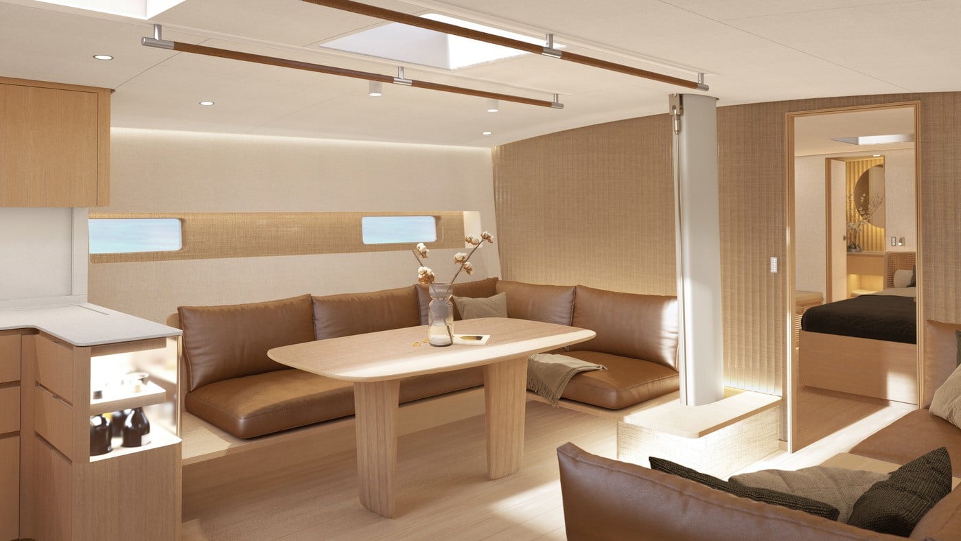Lika luftig invändigt som utvändigt och fokus på fria ytor – så som sig bör på en dagseglare.