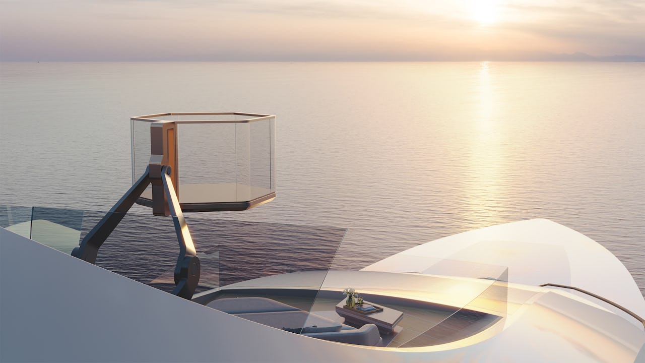 En del av konceptidén var att presentera nya innovativa finesser för att minska lyxyachtens klimatavtryck. Den kanske mest iögonfallande har fått namnet hammerhead och kommer från sin hajen med dito namn.