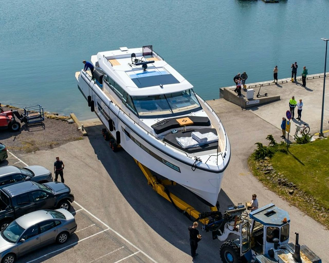 En sportkryssare i kolfiber kombinerar skandinavisk design med imponerande prestanda. Så lyder den korta beskrivningen av den kombinerade bjässe och fartbåt som sjösattes för första gången i fredags.