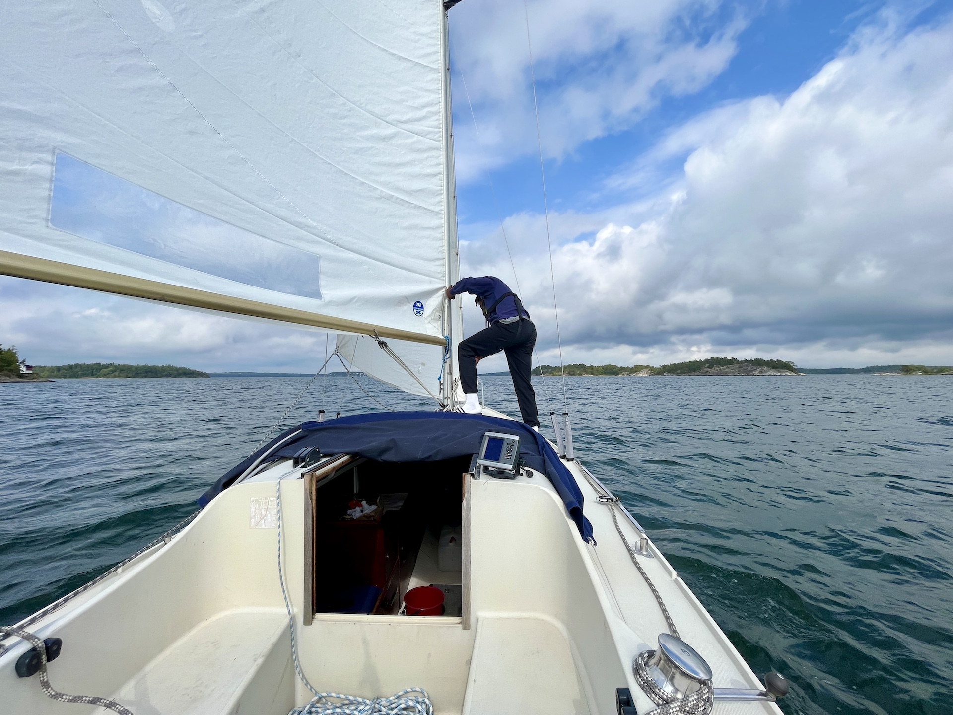 Själva sittbrunnen har säkert många IF-seglare svurit över. Den här trång och trots tidigare påpekanden så är den förvånansvärt obekväm. Ryggstödens lutning är i det närmaste obefintlig och överkanten skär obevekligt in i njurhöjd efter en stunds segling.