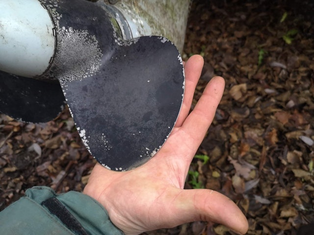 Små skador uppstår lätt utan att märkas. Större hack kan jämnas till med en fil. Lägg extra vikt vid propellerns framsida. Detsamma gäller växelhuset. Ett väl underhållet drev/växelhus gör skillnad (se separat artikel).