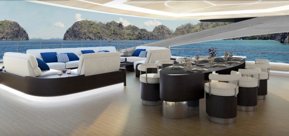 Ändå har har hon allt som skapar en första klassens superjakt. Ta bara den så kallade beach cluben i aktern som är på hela 27 kvadratmeter. Eller ägarkabinen. Den är på 67 kvadratmeter, har fönster från golv till tak och därtill en balkong som kan fällas ut när man ligger för ankare.