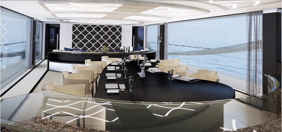 Sky loungen är på 35 kvadratmeter och har ett soldäck på 74 kvadratmeter alldeles intill. Tendergaraget rymmer en skaplig RIB på sju meter. För att nämna en del…
