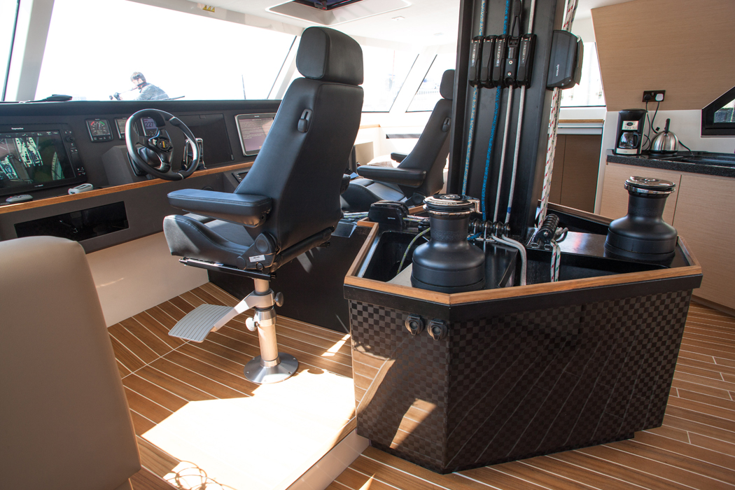 Det skulle kunna vara förarplatsen på en jättelik motorjakt. Men icke. Härifrån seglar man Broadblue