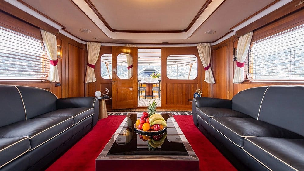 Båten tar upp till åtta gäster i fyra hytter vilket kanske låter lite i en tid där man helst får plats med lika många passagerare på en segelbåt som mäter knappa 40 fot. Men är man av den åsikten så har man nog missat poängen. Här ska det vara gott om plats för det exklusiva klientelet som hyr eller köper båten.