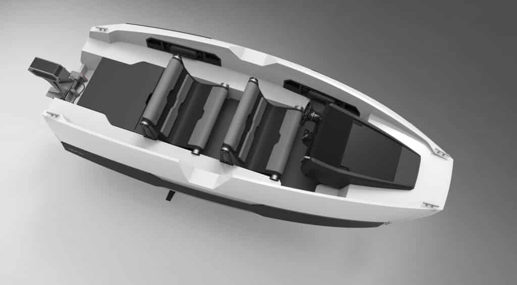 Här handlar det om en modern konstruktion som verkar gå lika snyggt som snålt. Till skillnad från den fantastiska men kanske inte så vackra föregångaren Foiltwister så kan One.fly köras med en helt vanlig utombordare – driven av el eller bensin.