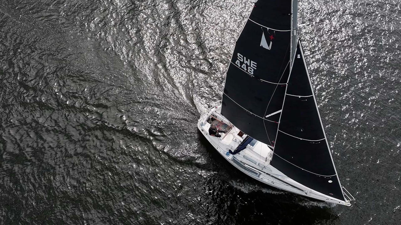 – Novan är en fockbåt men för att få lite mer driv har valt att göra en större fock på 110 procent. Den skapar skapar bra driv men är fortfarande smidig hantera. Det är stor skillnad mot att böka med en genua, säger Ola Barthelson.