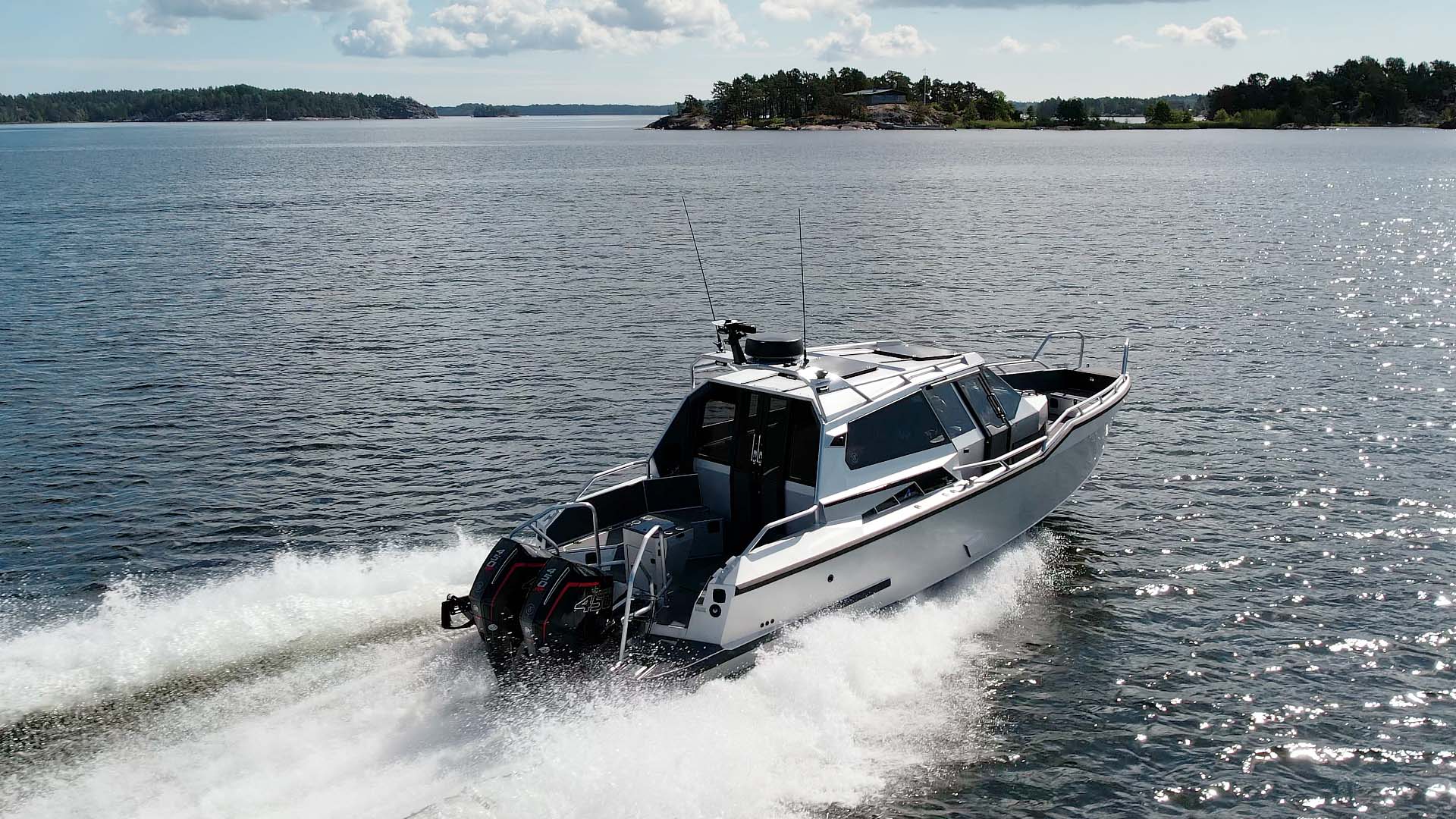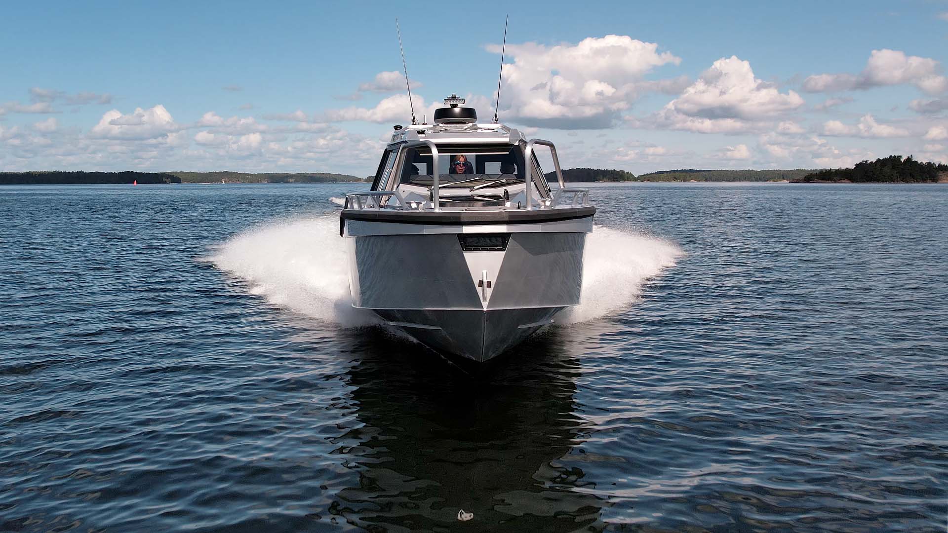 Pansarvagn, stridshingst och råskinn. Det är återkommande ord när Skippos utsände reporter ställs inför Anytecs stora satsning på en båt som ska kunna leverera oavsett väder. Och som gör det när andra båtar med fördel stannar kvar i tryggheten bakom vågbrytarna i hamnen. Att det sedan råder gynnsamma förhållanden under denna testdag må vara. Det finns likväl ingen anledning att tvivla.