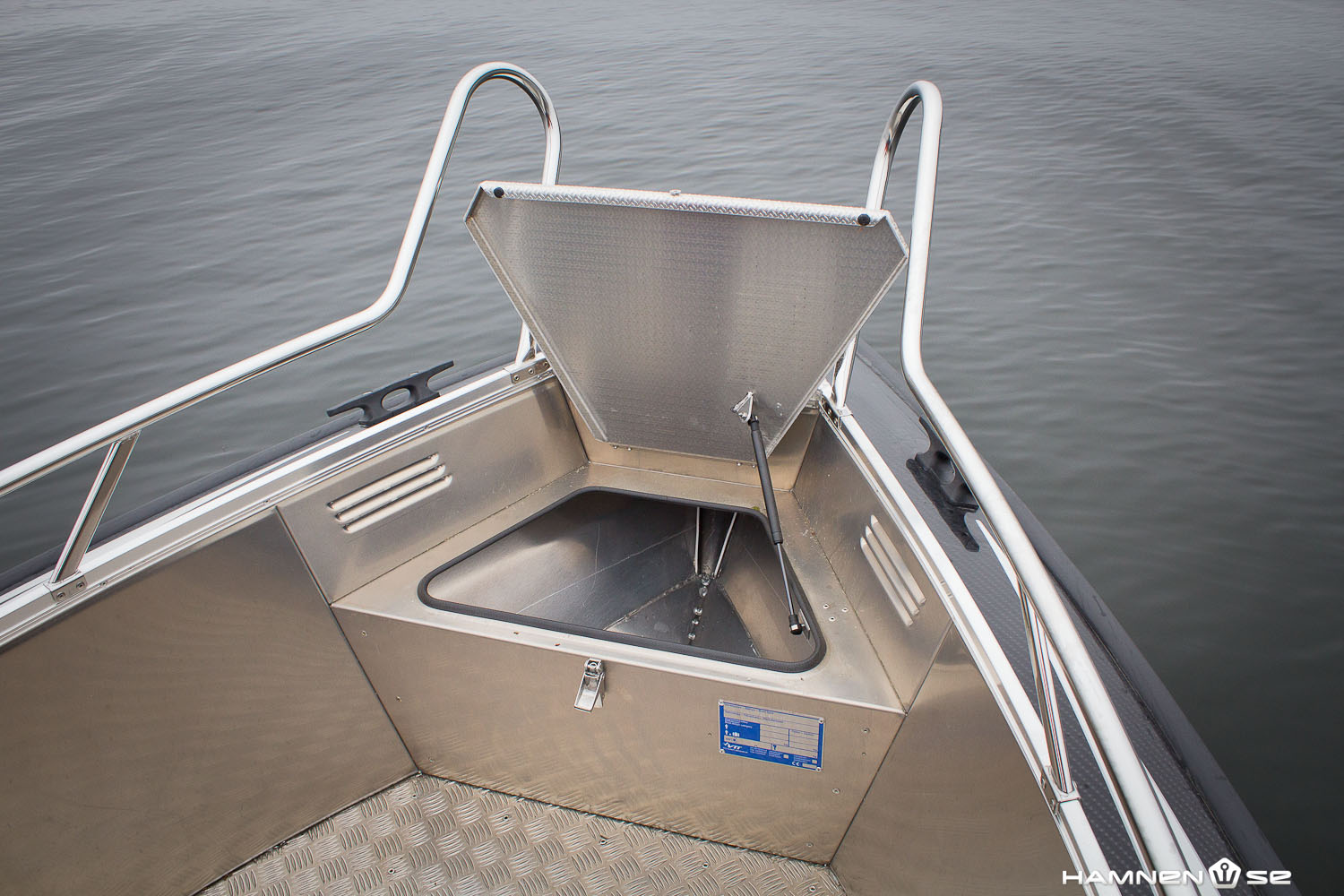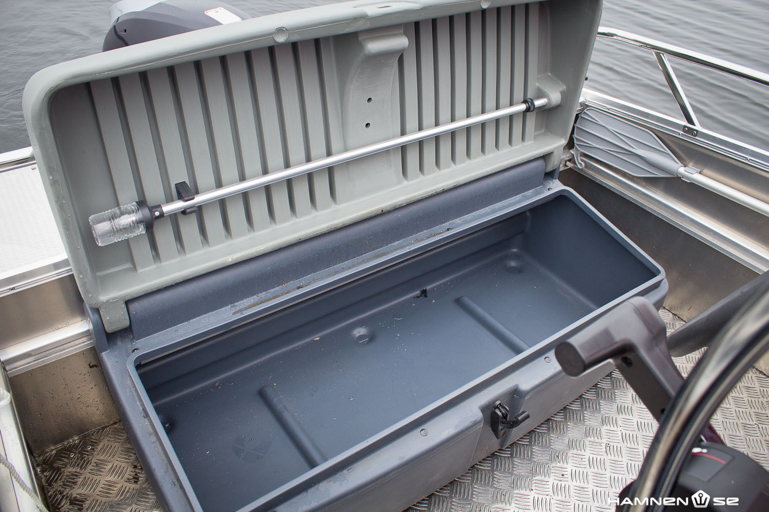 I övrigt är detta en enkelt utformad båt med funktionen i fokus. Den ska funka i alla väder och därför är alla gångytor grovt räfflade och halkskyddade. Regn- och rykvatten som kommer in hittar lika snabbt ut genom stora dräneringshål. Synd bara att de också släpper in en del vatten om man ligger stilla och ett par tungviktare har slagit sig ner i aktersoffan.