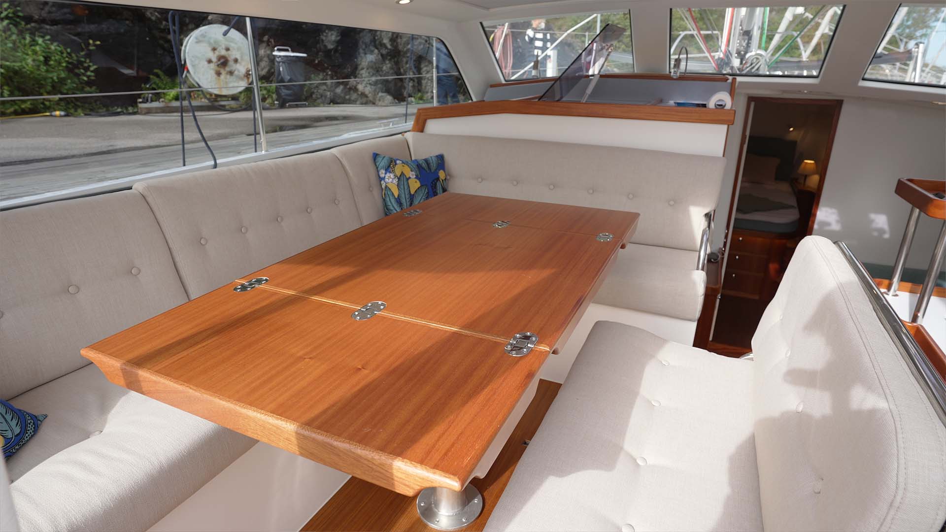 Och seglingsegenskaperna? Föga överraskande har stor möda lagts på att göra Heyman 42 PPH lekande lätt att hantera med blott två personer ombord. Två personer som med ålderns rätt har stelnat till i lederna dessutom. Om det sedan får lov att vara en fenköl som sticker 1,48 meter eller en grund köl med sticksvärd är helt upp till hur man tänker använda båten.