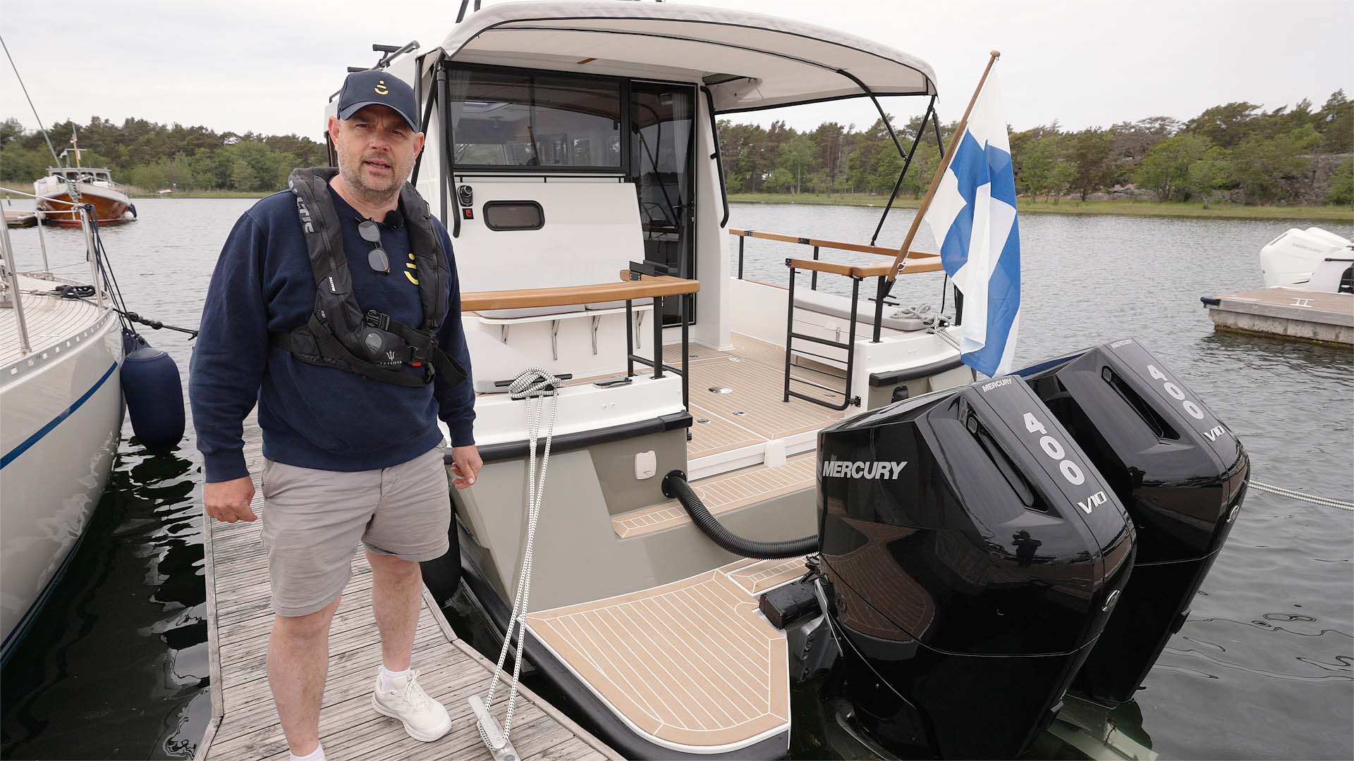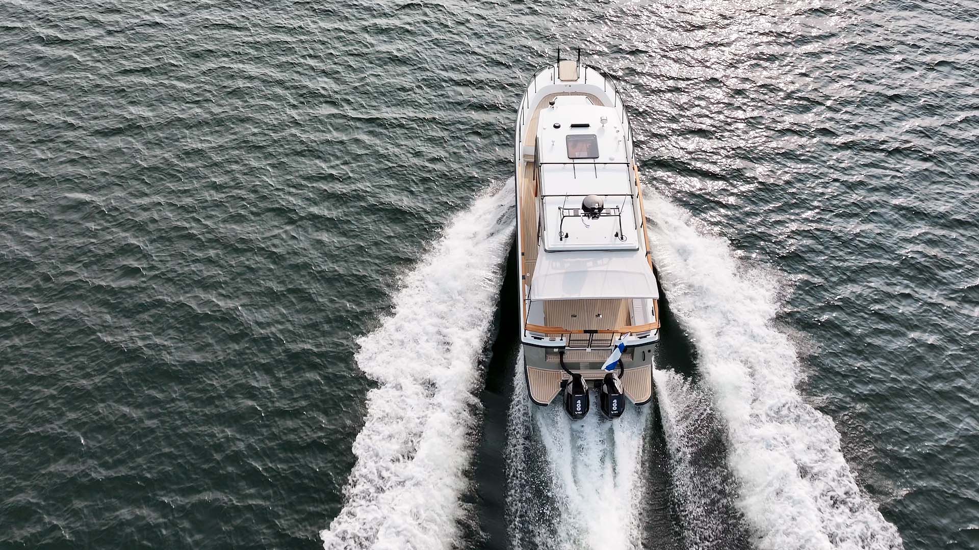 Det trygga uppträdandet, den inbyggda pondusen i stökig sjö, kursstabiliteten, marschfarten – det mesta är sig likt. Men så var det detta med bränsleförbrukningen. Med 2 x Mercury V10 på 400 hästkrafter vardera där bak så drar den iväg. Eller vad sägs om 3,5 liter per sjömil i marschfart mot 2,1 liter för dieslarna?