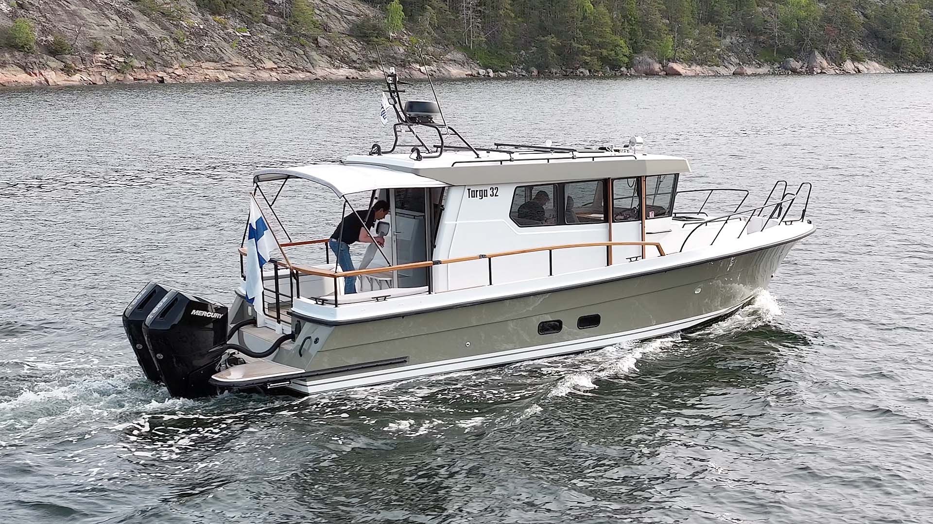 När man så plötsligt slänger ut dieselmotorerna till förmån för utombordare av herrejösses-format i trotjänaren Targa 32 så hajar man förstås till. Hur blir det nu med bränsleförbrukningen, den berömda inbyggda pondusen, försäkringspremien, kursstabiliteten – ja allt det där som trogna Targa-anhängare en gång föll pladask för? Eller allt det där som är Targas adelsmärke om man så vill.