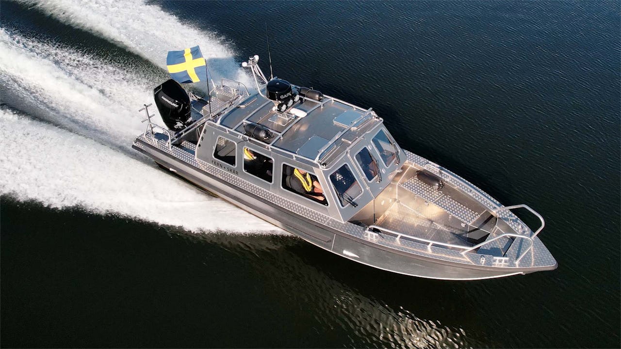 Många tillverkare av aluminiumhyttbåtar satsar på aggressiv och modern design. Tärnskär 30 går sin egen väg och känns tidlös, robust, gedigen och välbyggd snarare än trendig. Skippo testar och ser hur den står sig mot konkurrenterna.