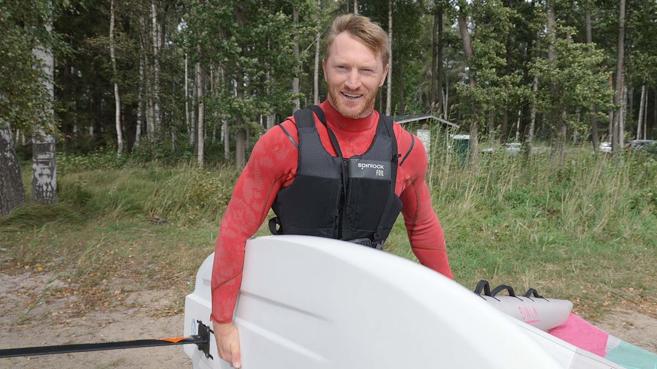 – När man väl kommit upp i cirka åtta knop är det tillräckligt för att brädan ska bära och då är det bara att segla vidare. Alla gör felet att ”stalla” det vill säga att man inte får tillräckligt med fart.