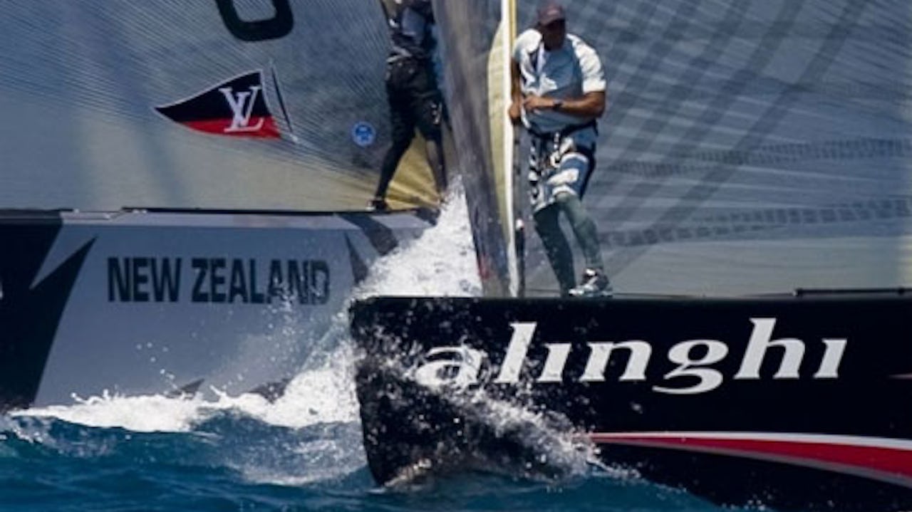 Efter sista rundningen så ledde Alinghi. Efter ca halva länsen vred vinden och blev allt brantare. Detta ledde till en brant slör och båda båtarna börja förbereda att skifta segel till genua. Plötsligt brast mastfästet till Alinghis spinnakerbom vilket fick till följd att Alinghi förlorade sin ca 140 m långa ledning till New Zealand som istället tog ledningen.