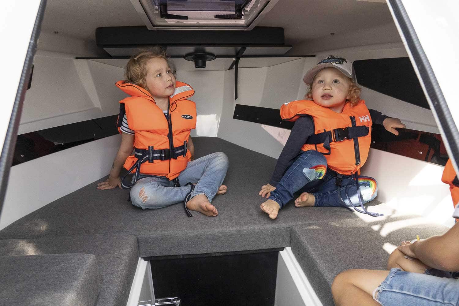 Det är inga bekymmer att ha med små barn ombord – de verkligen älskar att åka båt. Sittbrunnen känns säker och ruffen är otroligt uppskattad – i alla lägen.