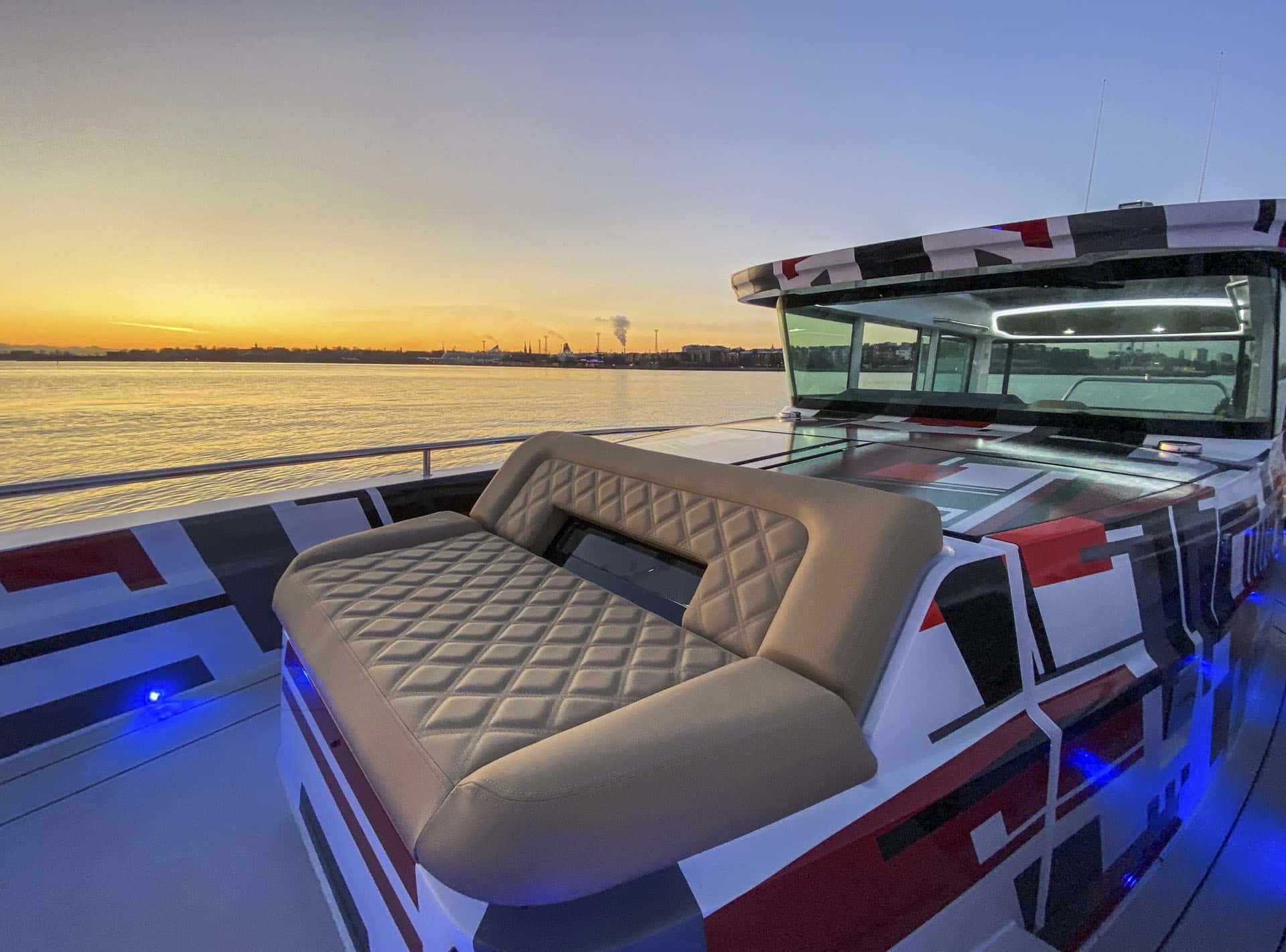 Listan med nya grepp är lång (nästan lika lång som tillvalslistan…) och fortsätter med löften om ett särdeles vridstyvt och starkt skrov, en mycket omsorgsfullt utformad förarplats, en särdeles lättåtkomlig förkabin (tack vare de nya så kallade Gullving-dörrarna), och på det hela taget en sinnrik inredningslayout som ska få Axopar 37 att kännas befriande rymlig.