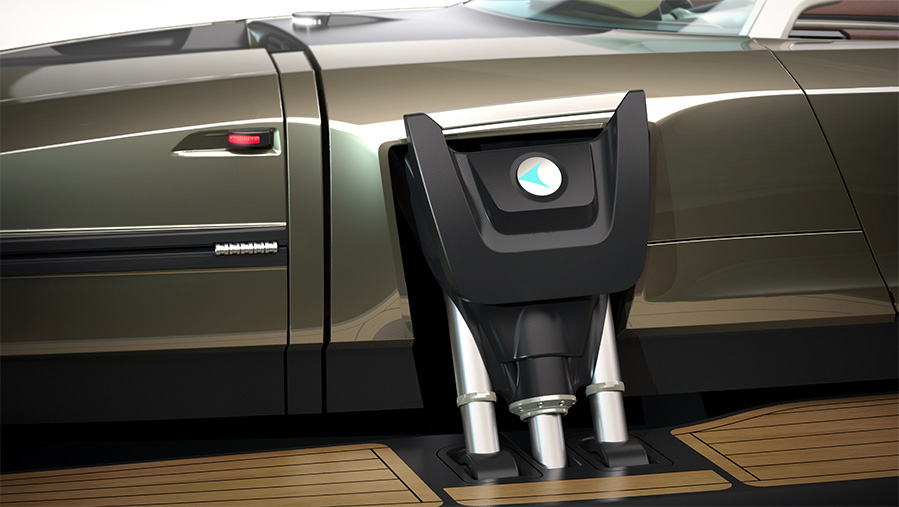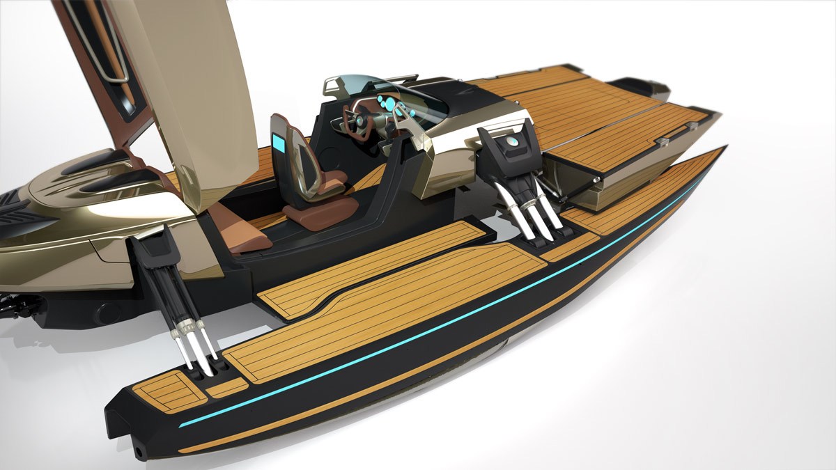 Funktionen är som följer: Innan take off fäller man in skrovsidorna och den stora badplattformen i fören och förvandlar båten till ett såväl hydro- som areodymiskt optimerat snål- och snabbfartyg. Båten balanserar på två bärplan, om det råder inga tvivel, men det är oklart hur framdrivningen sker, vilket brukar vara ett stort problem eftersom båten flyger.