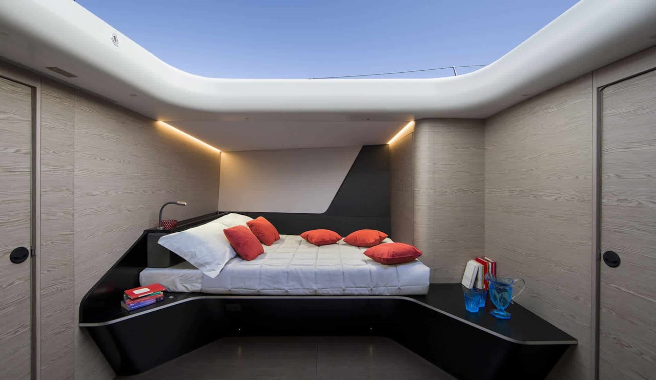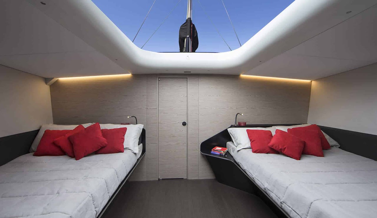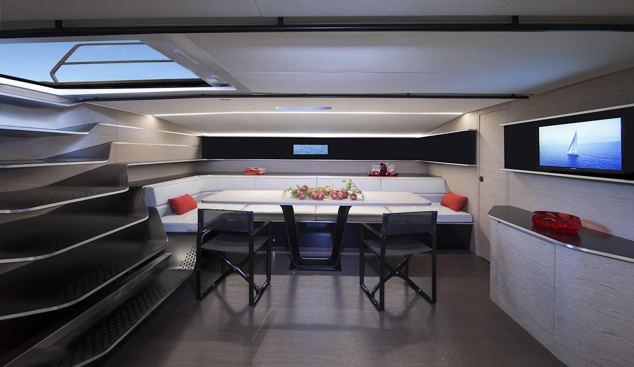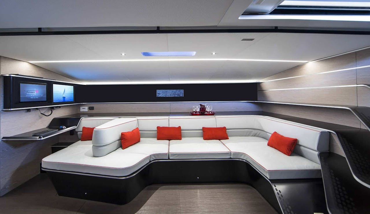 Det mesta utom däcket är byggt i kolfiber. Det har presterat väl på kappsegling och även om det mesta styrs med hydraulik via knappar så ser man helst 24 personer i besättningen under race.