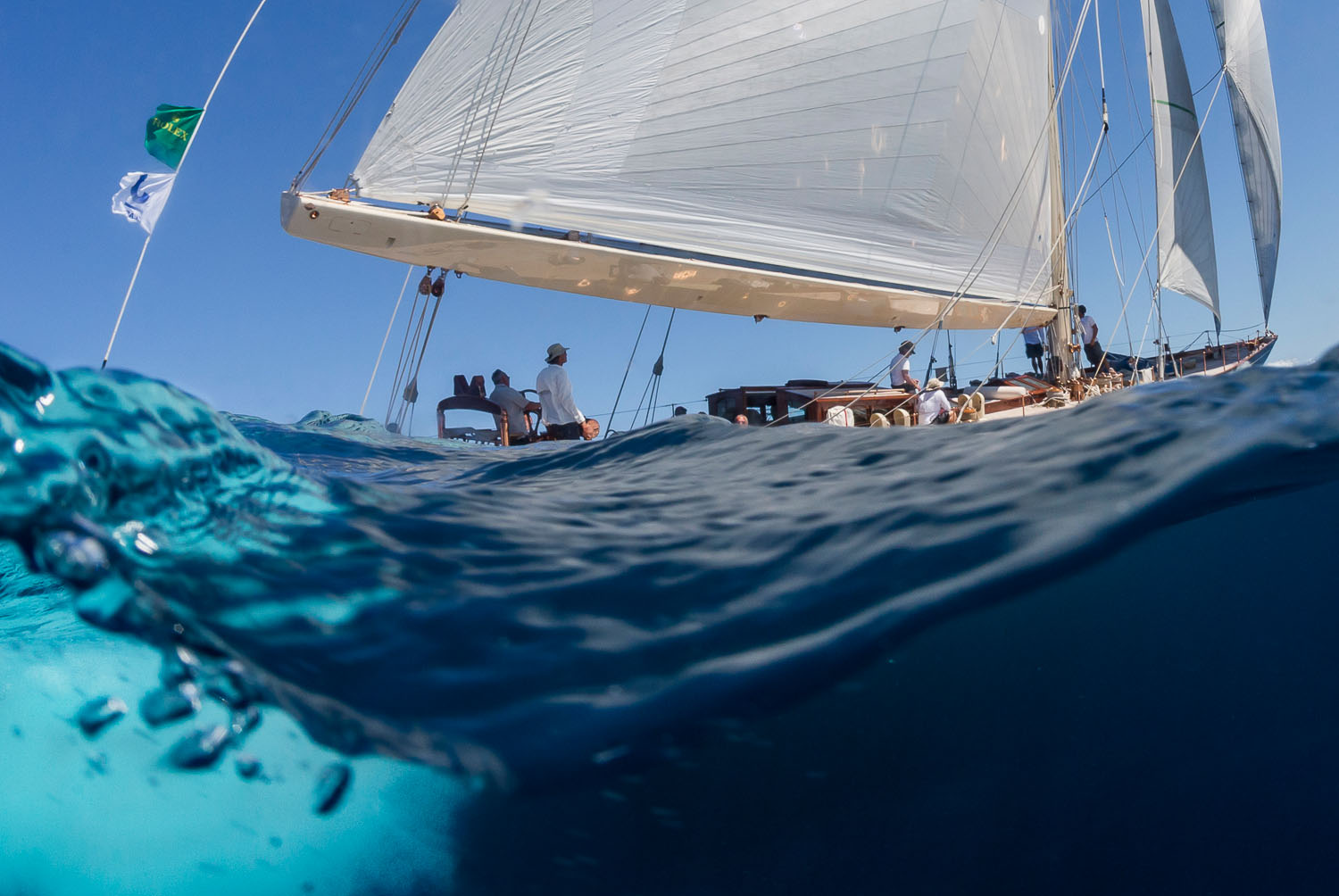 Med sina 140 fot långa linjer linjer, höga master, glänsande trädäck och högglanspolerade vinschar är J-båtarna en syn för gudar. Inte minst när de kappseglas hårt som förra veckan i Porto Cervo.