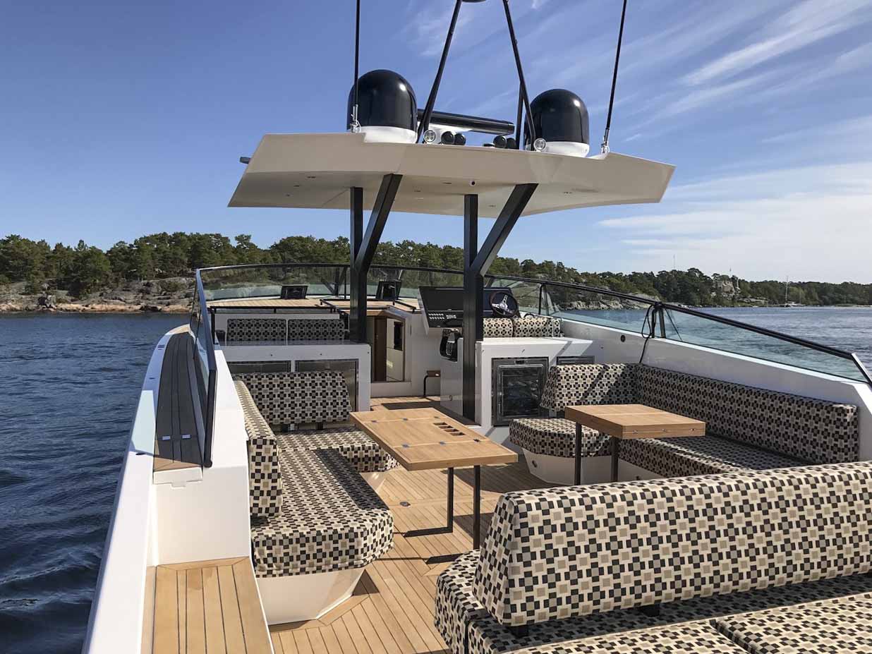 Delta 60 Open känns som en helt ny modell. Inte alls så lik Delta 54 som vi trott. Visst är skrovet detsamma men däck och överbyggnad är helt nytt. Aktern har vinklats och friborden sänkts ett par centimeter. Helheten ger lägre och mer utdragna linjer vilket ger en slankare och smidigare känsla än pampiga föregångaren.