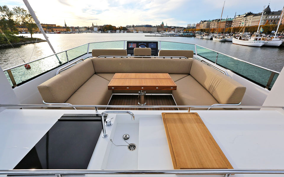 Svenska Lars Modin står bakom designen och en stor del i processen har just varit att skapa ett förhållandevis snålt skrov. Medelförbrukningen i 20 knop uppges vara 170 liter i timmen och i 32 knop 330 liter i timmen. Alltså 8,5 och strax över 10 liter per sjömil.