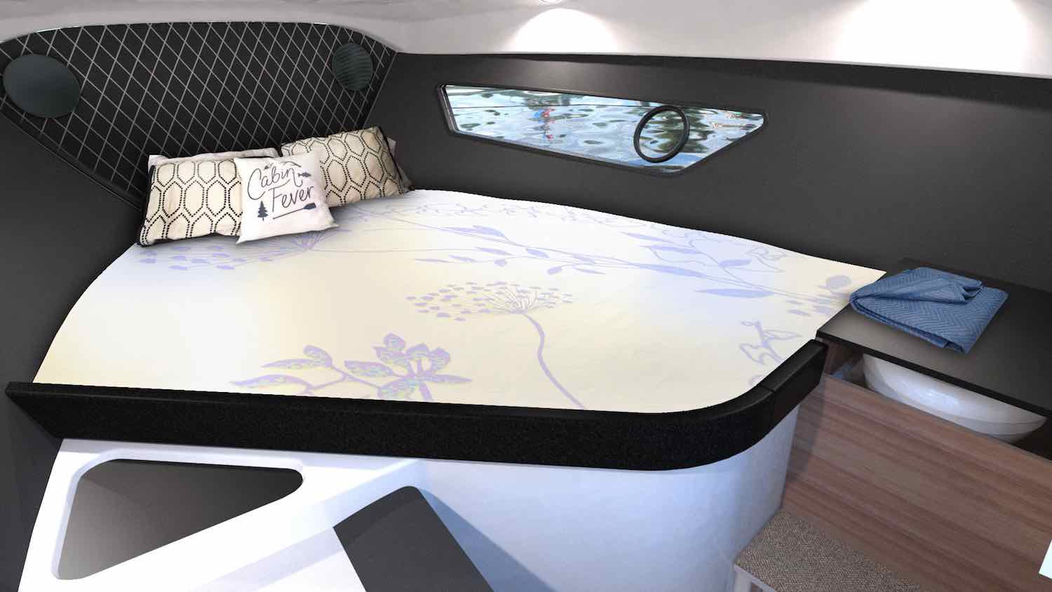 Under däcket ryms totalt tre hytter med rejäla dubbelkojer och ett pentry med tillhörande bänk på hela två meter. Ett annorlunda grepp är att skippa navigationsbordet till förmån för ett modernt så kallat navigationscenter som trollas fram ur salongsbordet. Häpp!