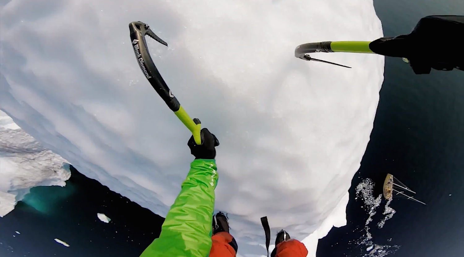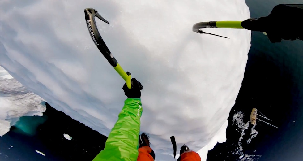 Under mitt varv runt jorden i Volvo Ocean Race pratades det mest om hur man skulle undvika isberg. Här är ett gäng klättrare som letar rätt på de största för att sedan klättra upp på dem. Inte ett helt riskfritt upptåg.
