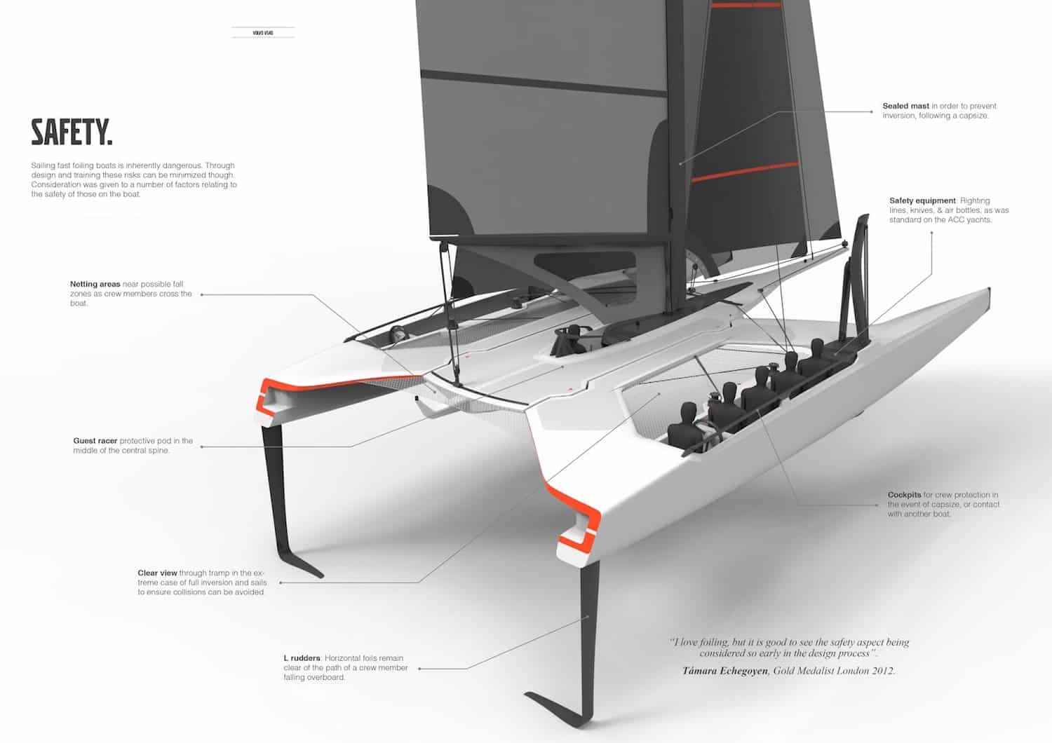 – Jag skulle till exempel kunna nämna att den redan är provseglad i en dator och att den gör 35 knop i tio sekundmeter. Den är inte lika snabb som de båtar som man seglade i America´s Cup nu senast, men där är bra nära. Nu ska man ju dessutom byta till stora foilande enskrovsbåtar i Amera´s Cup och då blir ju VS40:an top of the line när det gäller prestanda.