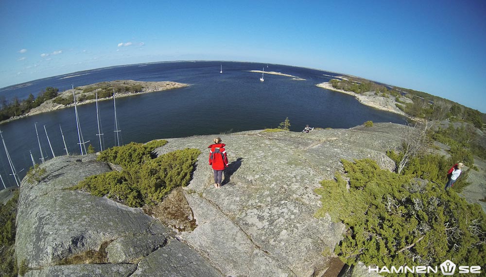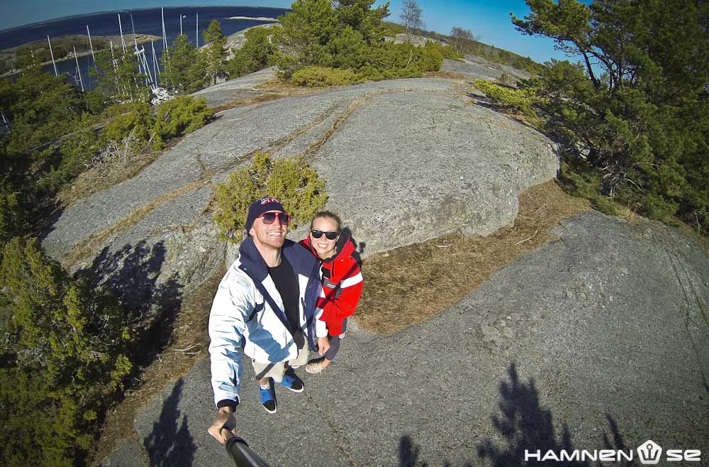 Vinden har ökat men solen håller sig fortfarande framme när vi stävar ut på havet från Sandhamn med siktet ställt på Biskopsön.