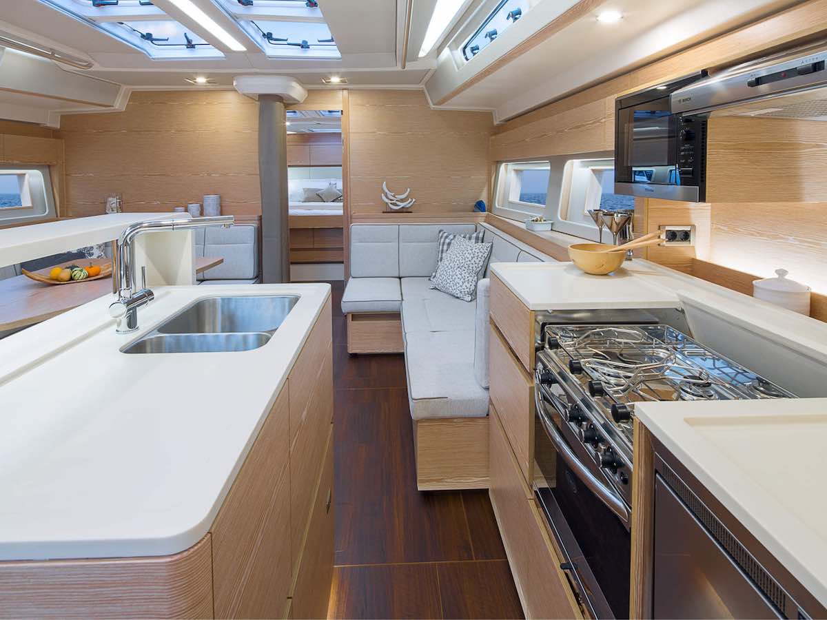 Den maximala takhöjden på 2,15 m ger en imponerande känsla av rymd och utrymme, medan 20 luckor med öppningsdäck ger maximal ventilation i hamnen och hjälper till att förbättra naturljuset i hela bostaden. Ett brett antal fabriksmonterade alternativ gör det möjligt för ägarna att skräddarsy allt från navigations- och underhållningssystem till segelspecifikation och költyp till deras behov.