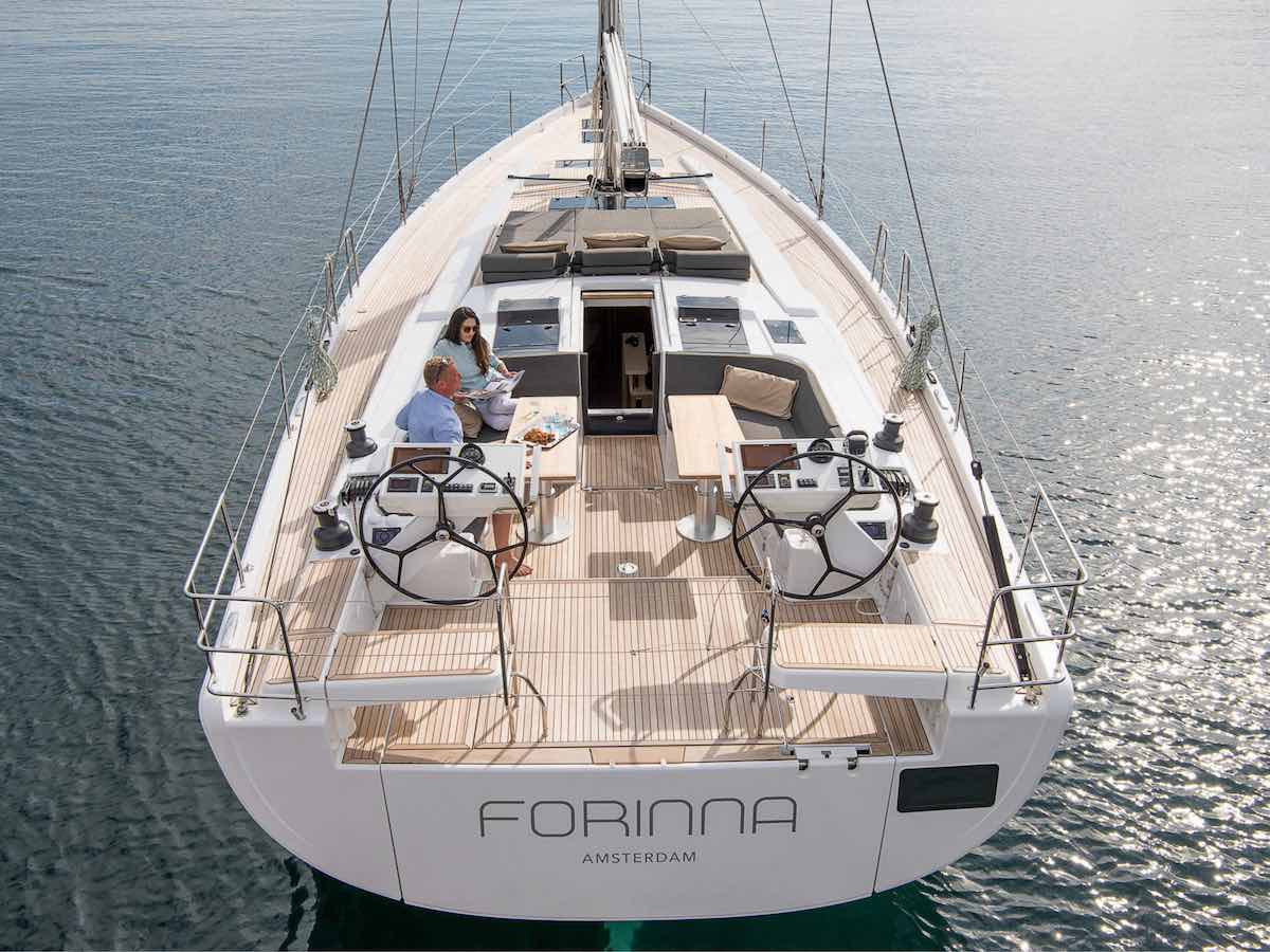De flesta av segelsystemen kan manövreras från positioner bredvid tvillingpulpitarna i bakre delen av sittbrunnen, med elektriska vinschar och furlingssystem som erbjuds som alternativ som sannolikt kommer att väljas av de flesta ägare. Vid aktergaraget finns tillgång till den nedfällda badplattformen via tre enkla steg, såväl som aktergaraget för waterjeten med sitt lätthanterliga sjösättningssystem.