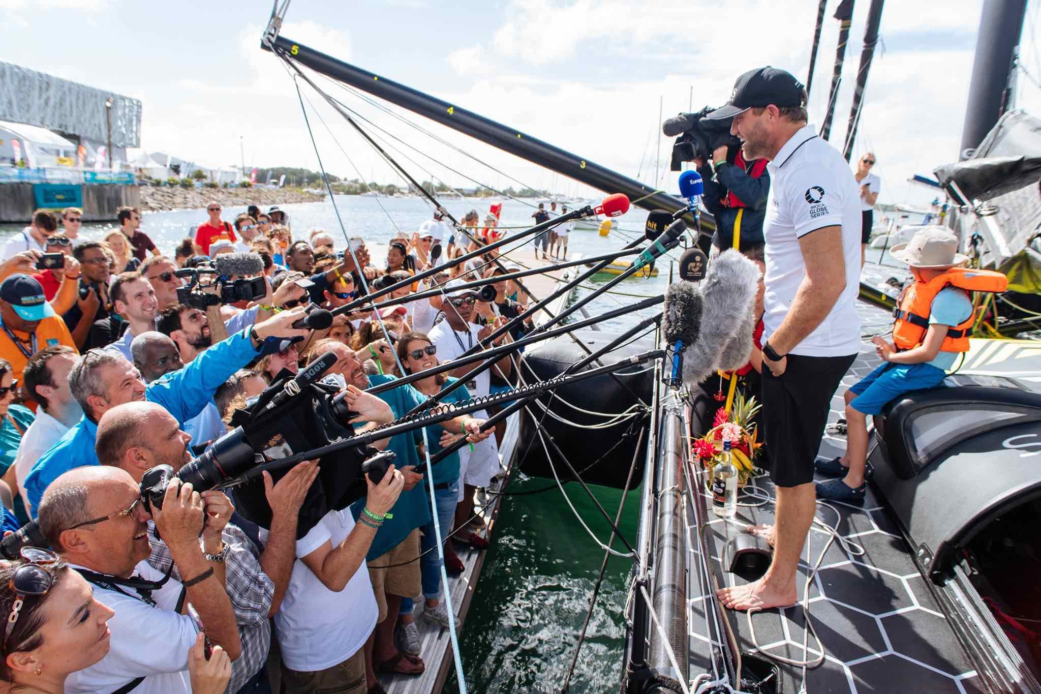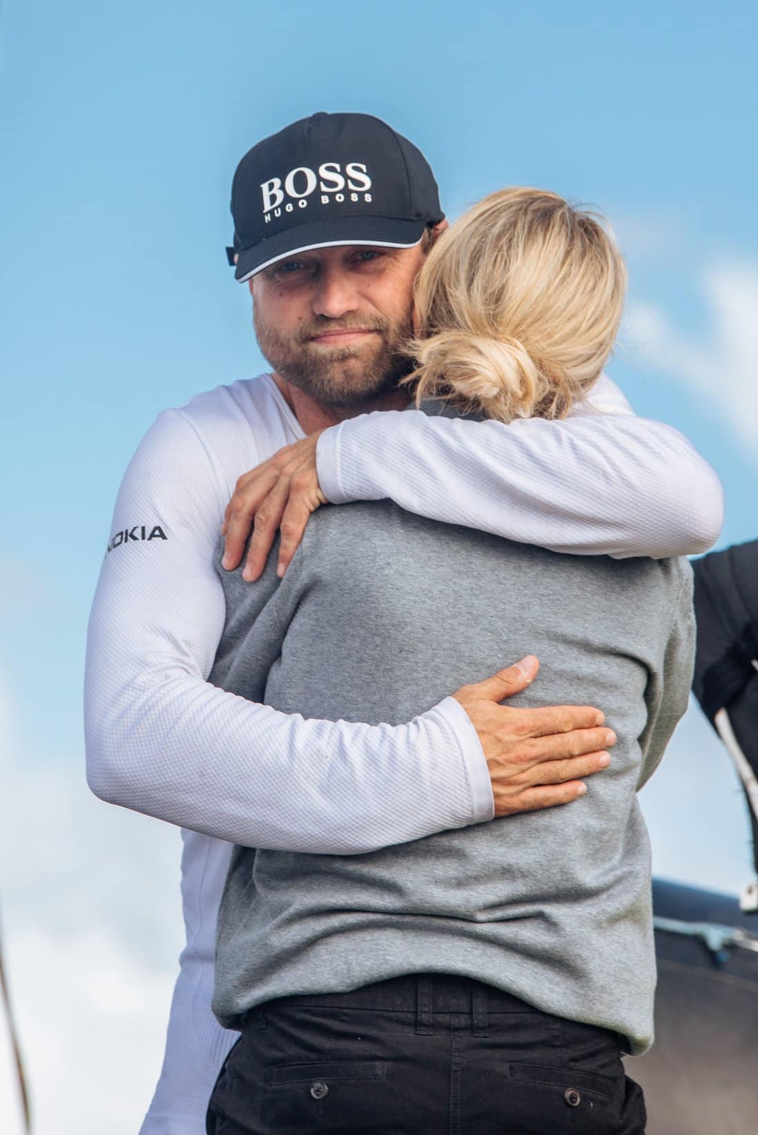 – Vi är de enda i flottan som har nytta av våra foils utan kraftig krängning. Jag behöver bara fem graders lutning för att kunna lägga åtta tons tryck på min foil, vilket gör att jag lyfter upp båten när jag seglar lågt på undanvind. Det gör också att jag kan ha planare segel än konkurrenterna. Vi är snabbast på undanvind men långsammast på kryss.