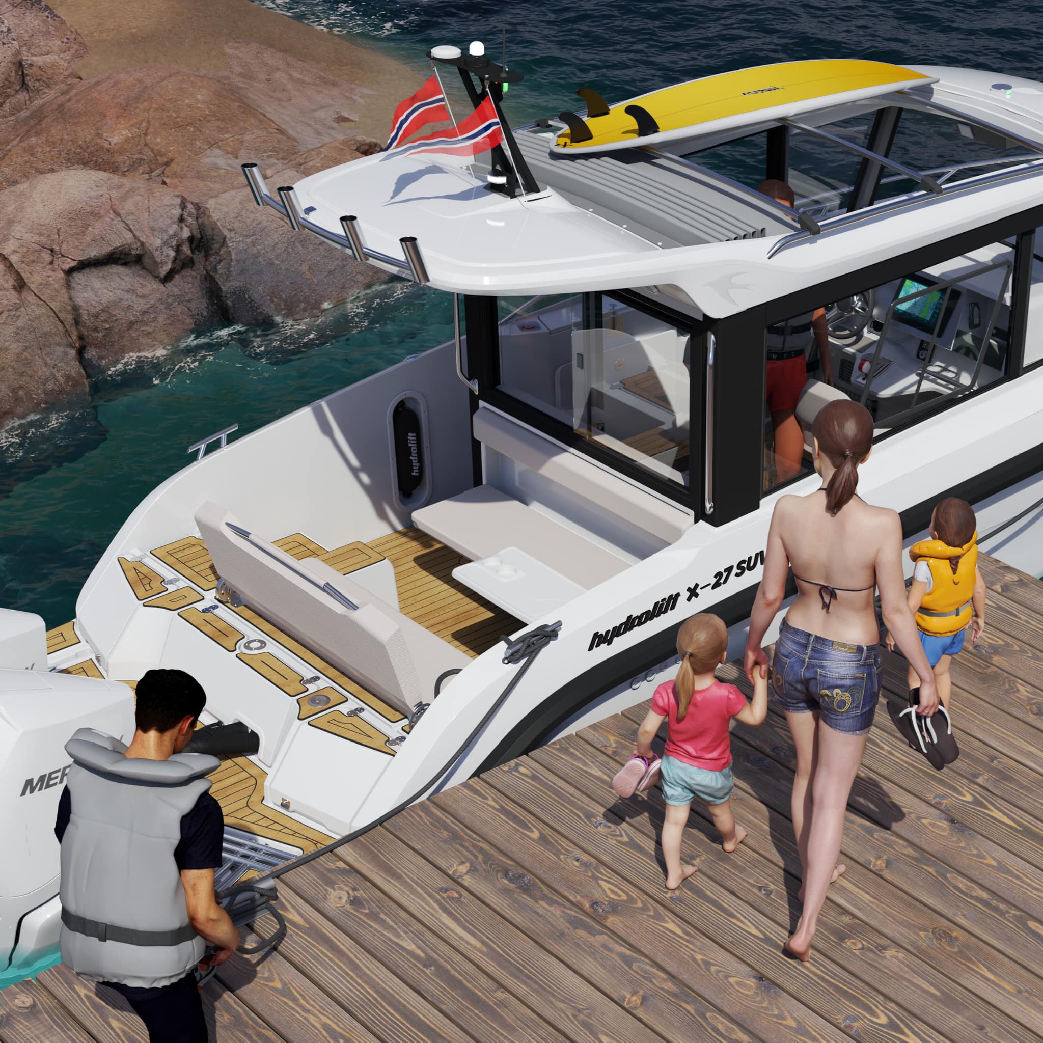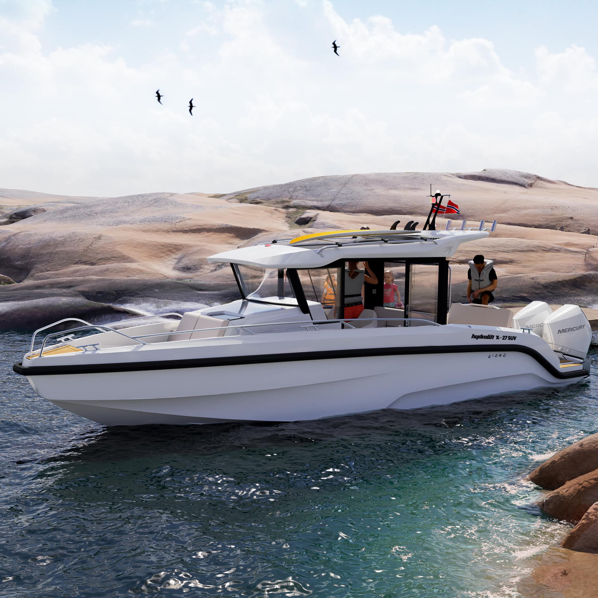 Hydrolift X-27 SUV har hyttbåtens alla attribut men har också kryddats med sittplatser och funktioner från en daycruiser.