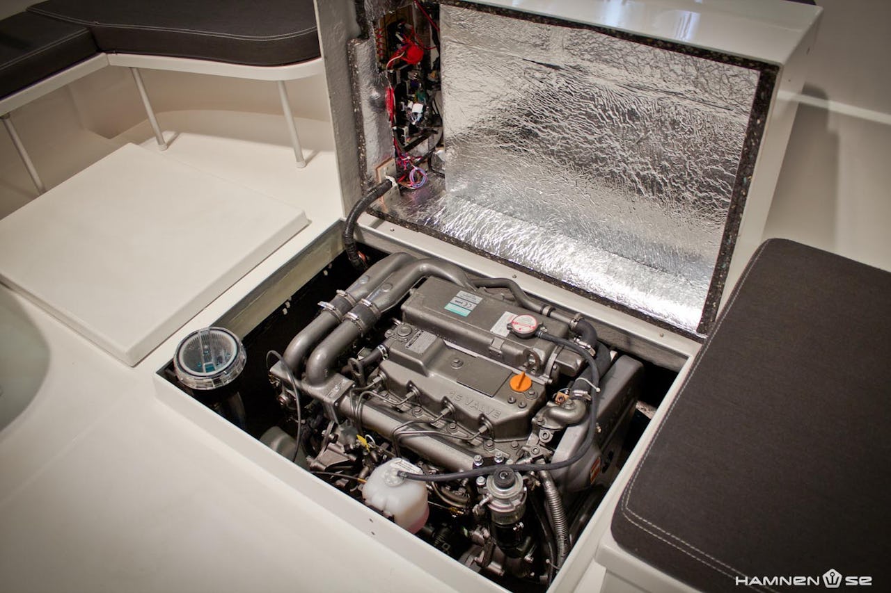 Inter 6900 rekommenderas extra varmt med en Yanmar-diesel på 72 hk under huven. Det ger en toppfart på 14,5 knop vilket är på rätt sida gränsen för den som vill köra båt med en knapp innanför västen.