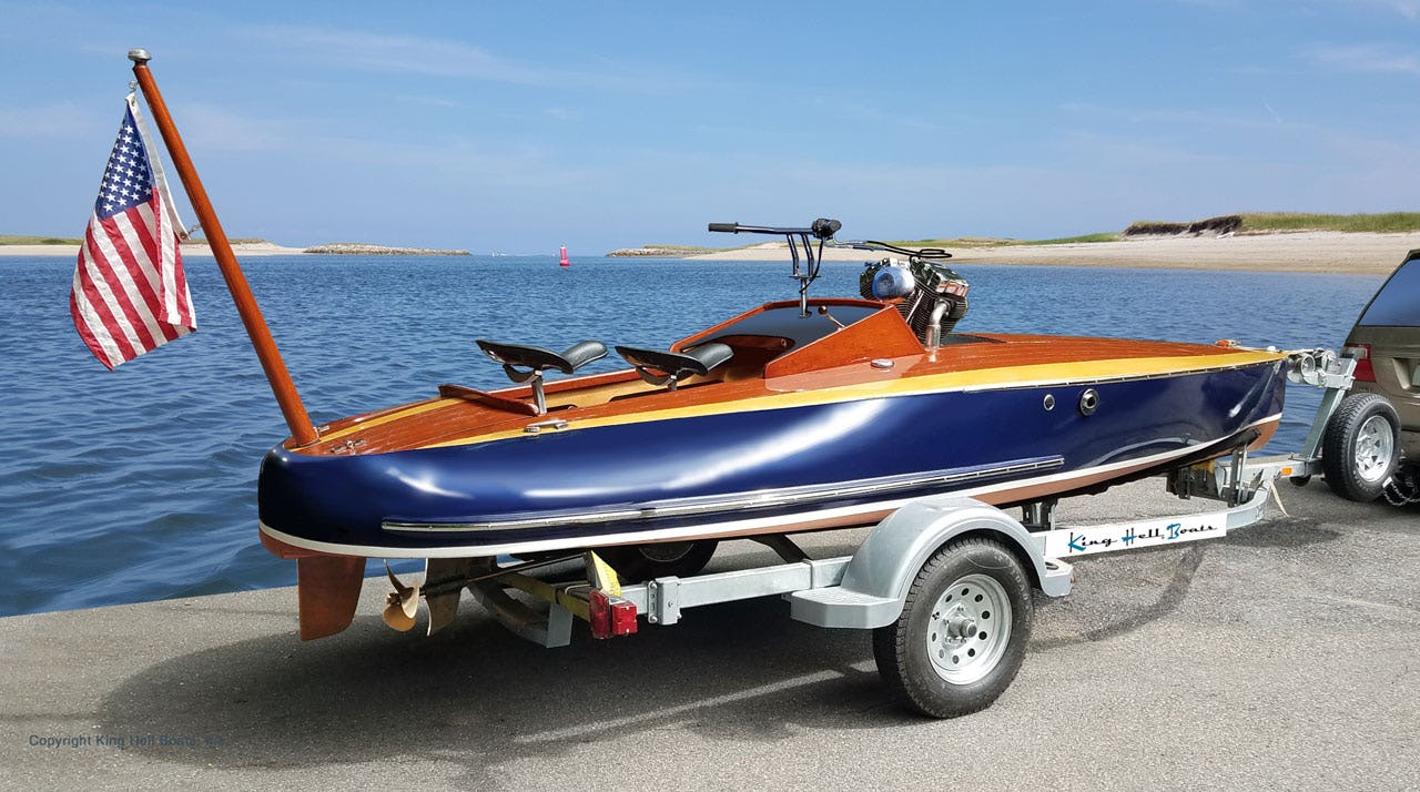 Om man tycker att vattenskotrar är för plastiga och larviga med sitt surrande ljud och sina färgskrikiga dekaler. Och att en vanlig båt är för trist att köra. Då ska man spana in Kings Hell Boat som är en båtintressad hojåkares våta dröm.