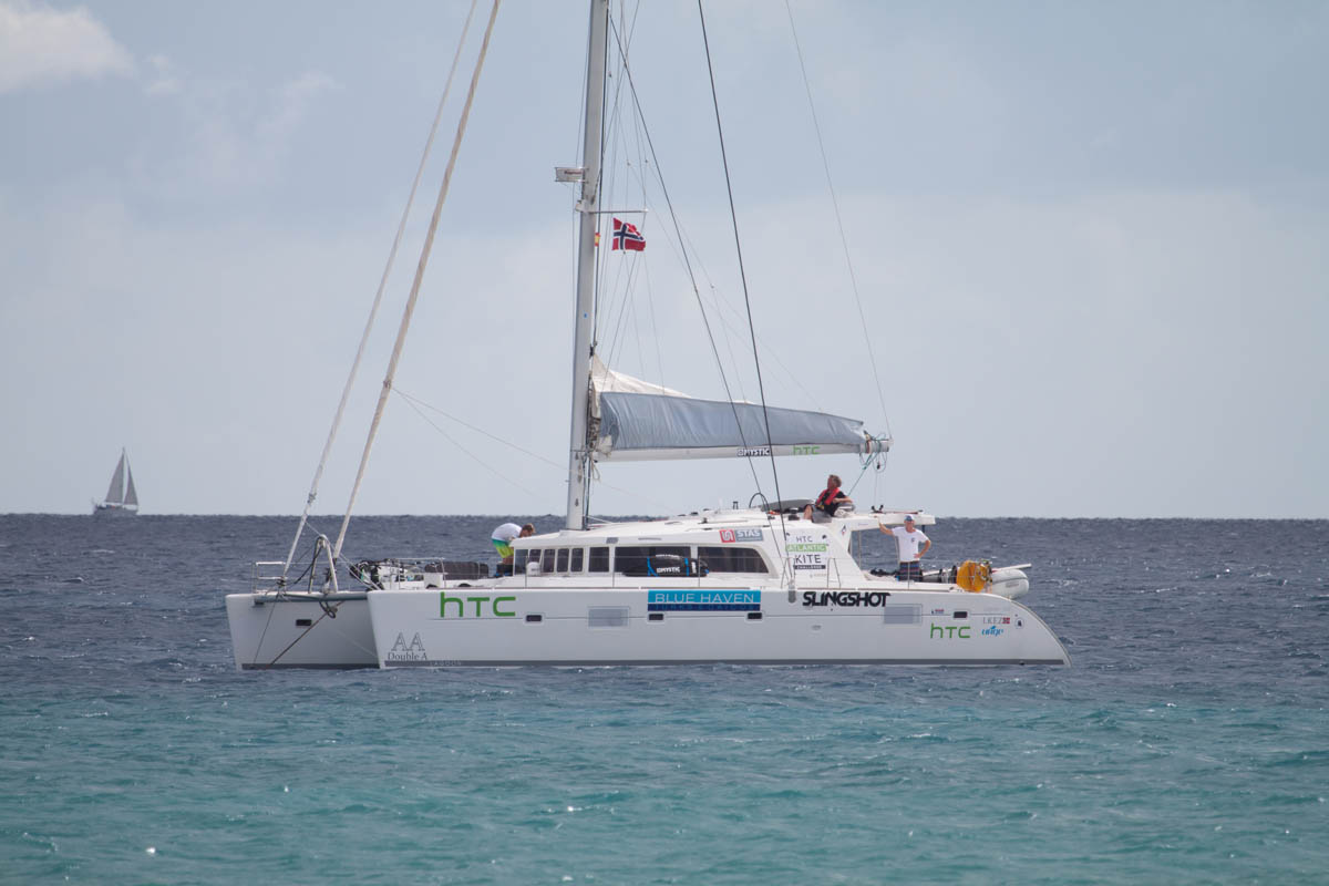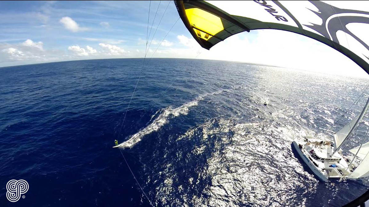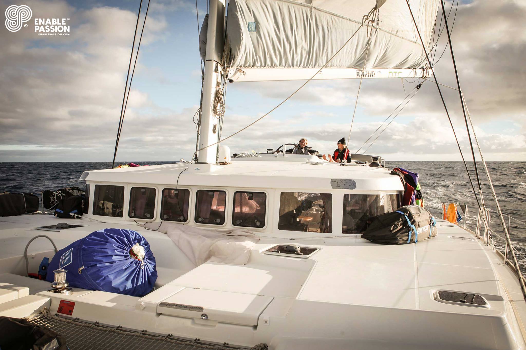Laget består förutom av Camilla, också av fem killar. Kiten är deras stafettpinne och följebåten är en Lagoon 500, en segelförsedd katamaran på 50 fot.