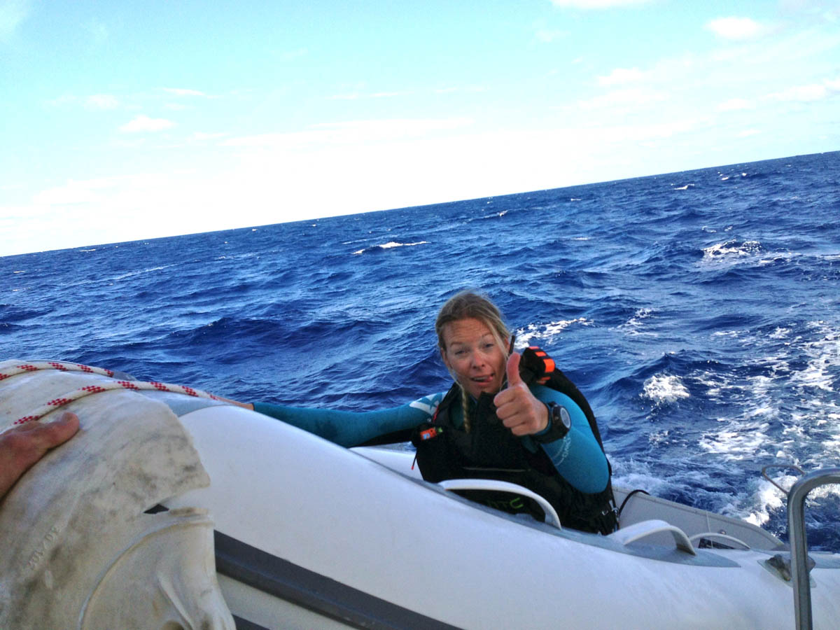Men vi har bra sammanhållning och fantastisk hjälp av Erik Van Vuuren som är skeppare på följebåten. Han är fantastisk på att manövrera katamaranen när vi byter surfare. Speciellt när det båser hårt och går 5–6 meter höga vågor.