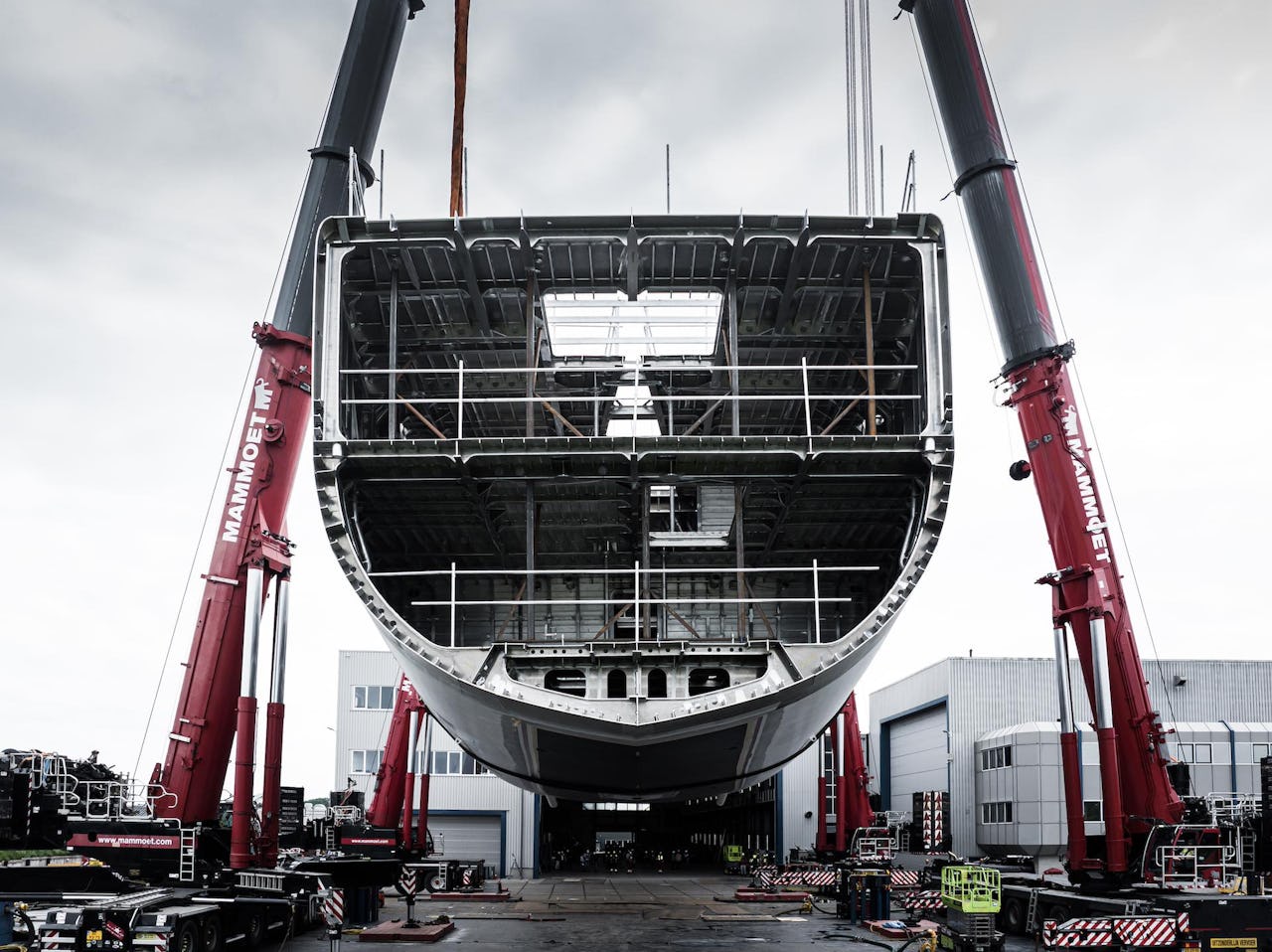 Royal Huisman Project 410, som bjässen heter, är ingenting mindre än världens största slup, eller enmastade segelbåt om man så vill. När den är färdigbyggd kommer den att mäta 85 meter.